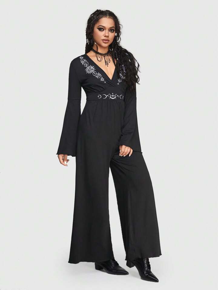 Goth Mono De Mujer Transpirable Con Cuello En V Y Bordado De Cara De Sol Para Estilo De Vacaciones
