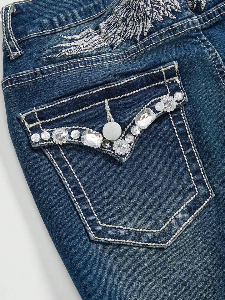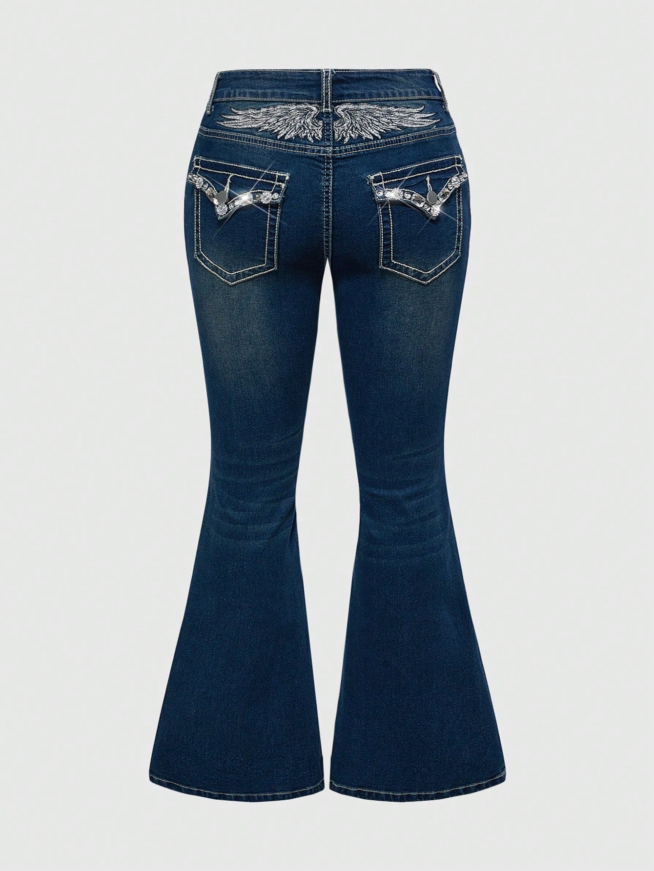 Goth Pantalones vaqueros acampanados de mujer con bordado de alas de rhinestones, de estilo casual