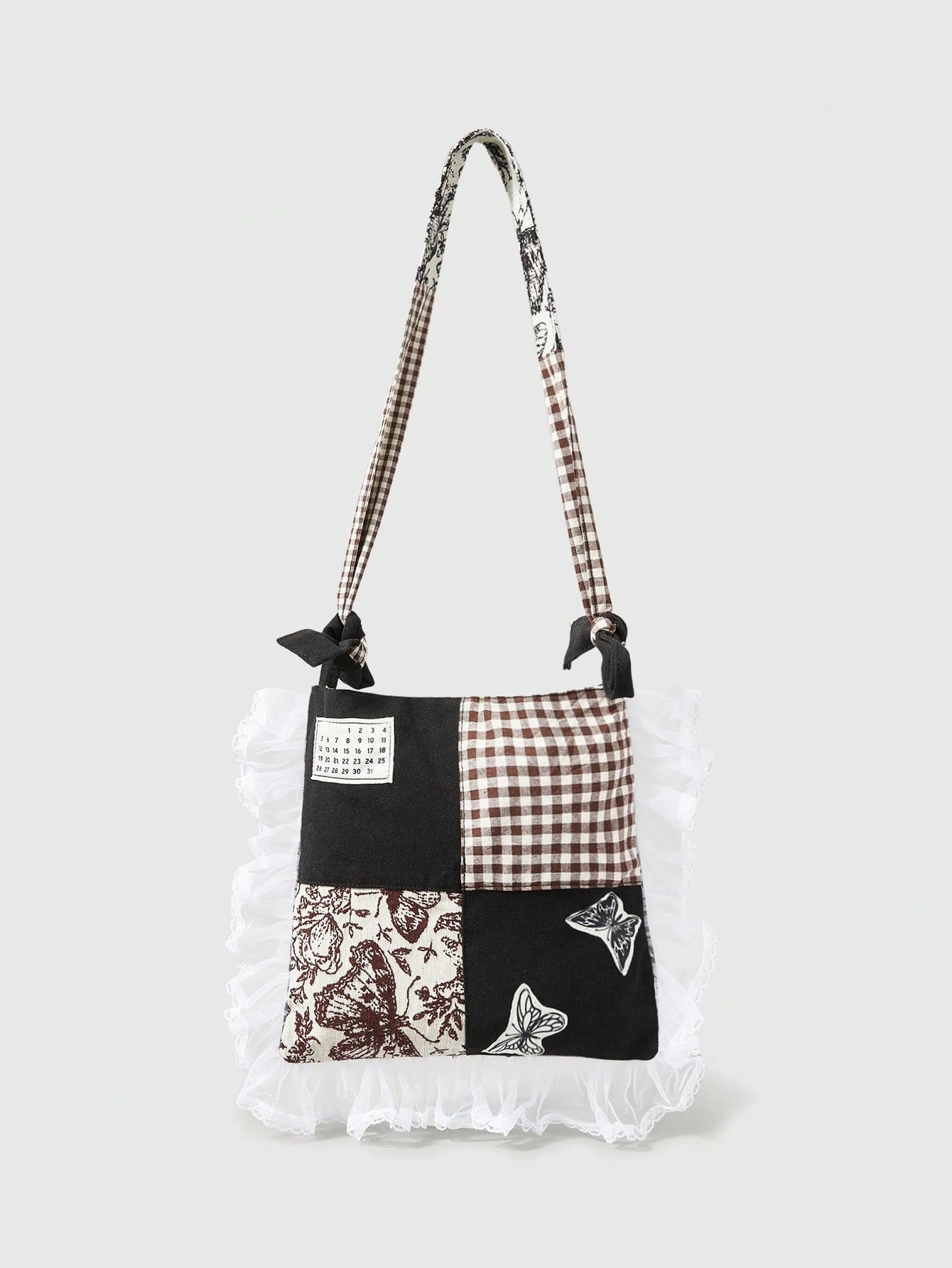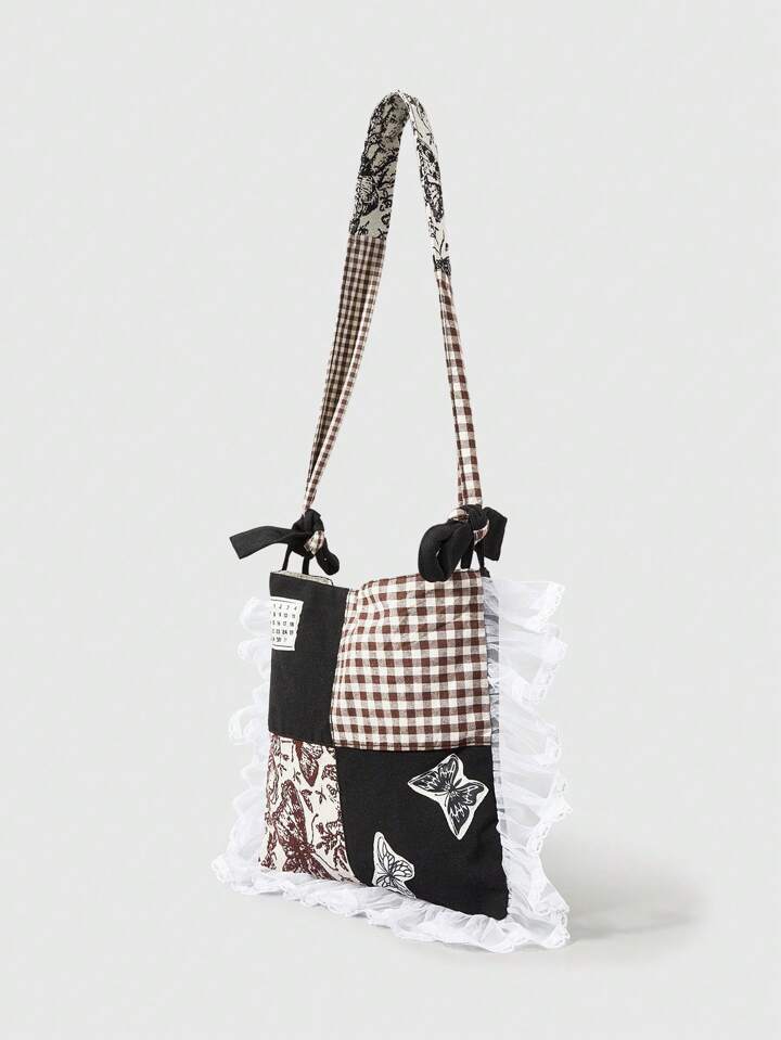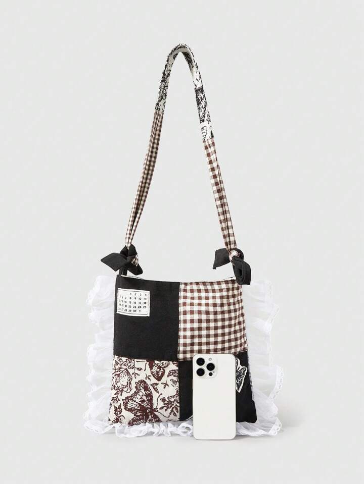 Goth Bolso de hombro informal de moda para mujer con estampado de patchwork