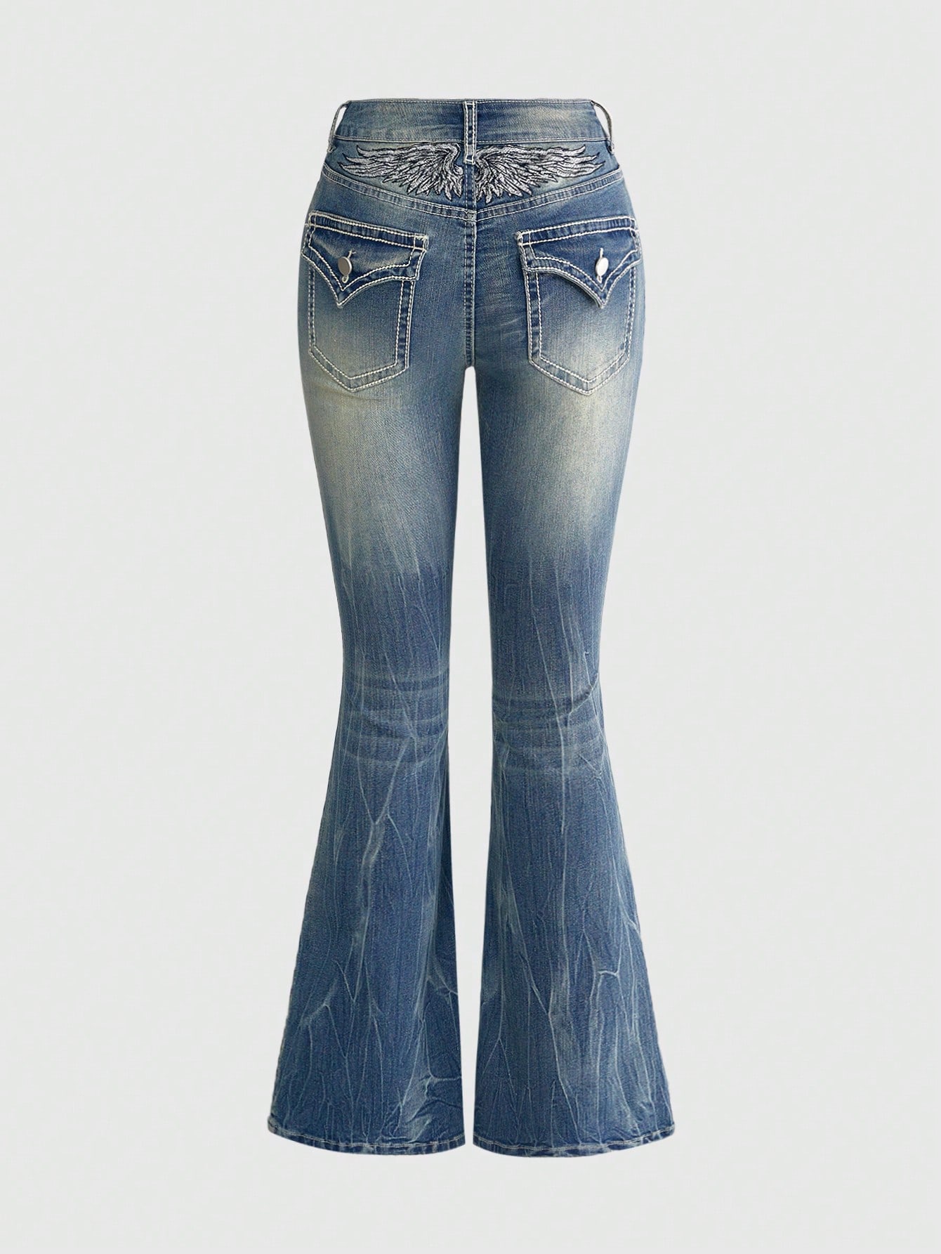 Goth Jeans de pierna acampanada con bordado de alas de cristal para mujer