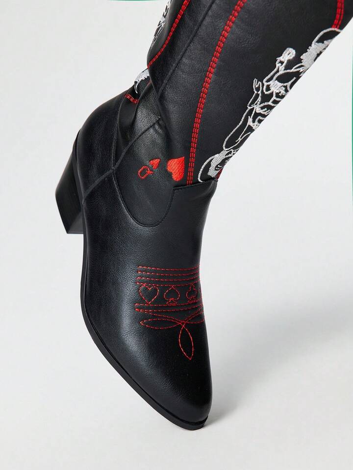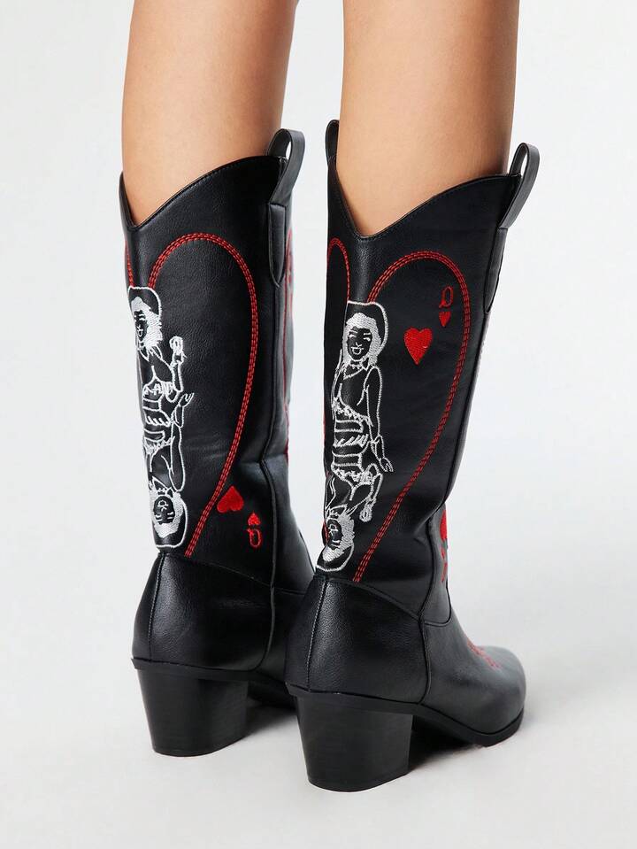 Goth Botas altas con diseño hueco de alas de mariposa bordadas, nuevas botas de primavera/otoño hasta el muslo