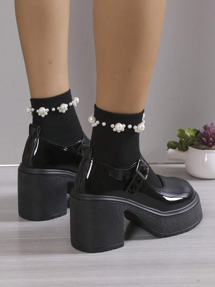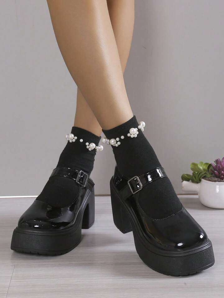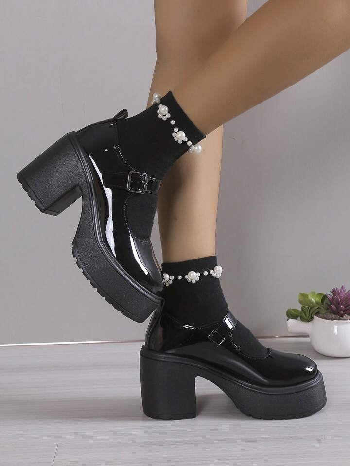 Goth Nuevas Llegadas De Zapatos Mary Jane De Estilo Escolar Retro Brillante Para Mujer Con Correa De Hebilla, Tacones De Cuña Y Plataforma Gruesa, Primavera Y Otoño 2024