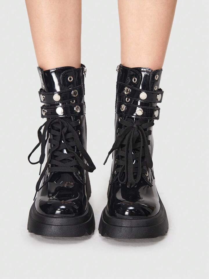 Goth de mujeres de recubierto con diseño de hebilla Botines con Botas cortas