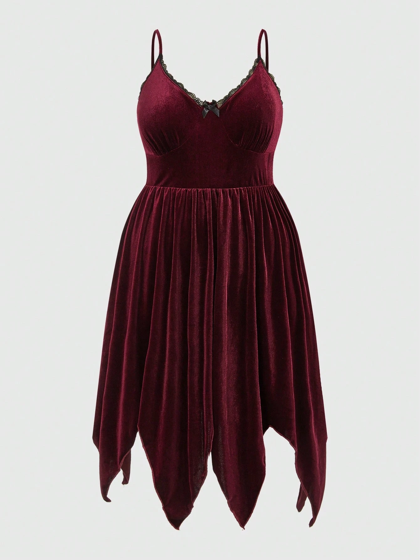 Goth Vestido De Talla Grande Para Mujer Con Parches De Encaje Y Dobladillo Asimétrico