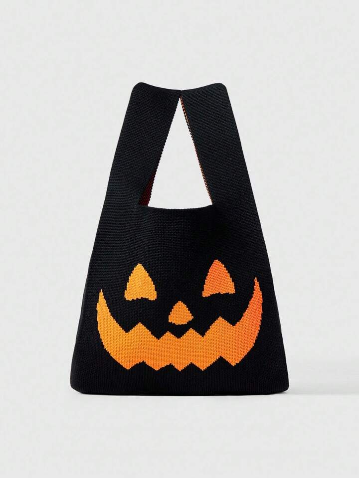 Goth Bolso de mano de mujer con estampado de calabaza de gran capacidad, adecuado para Halloween