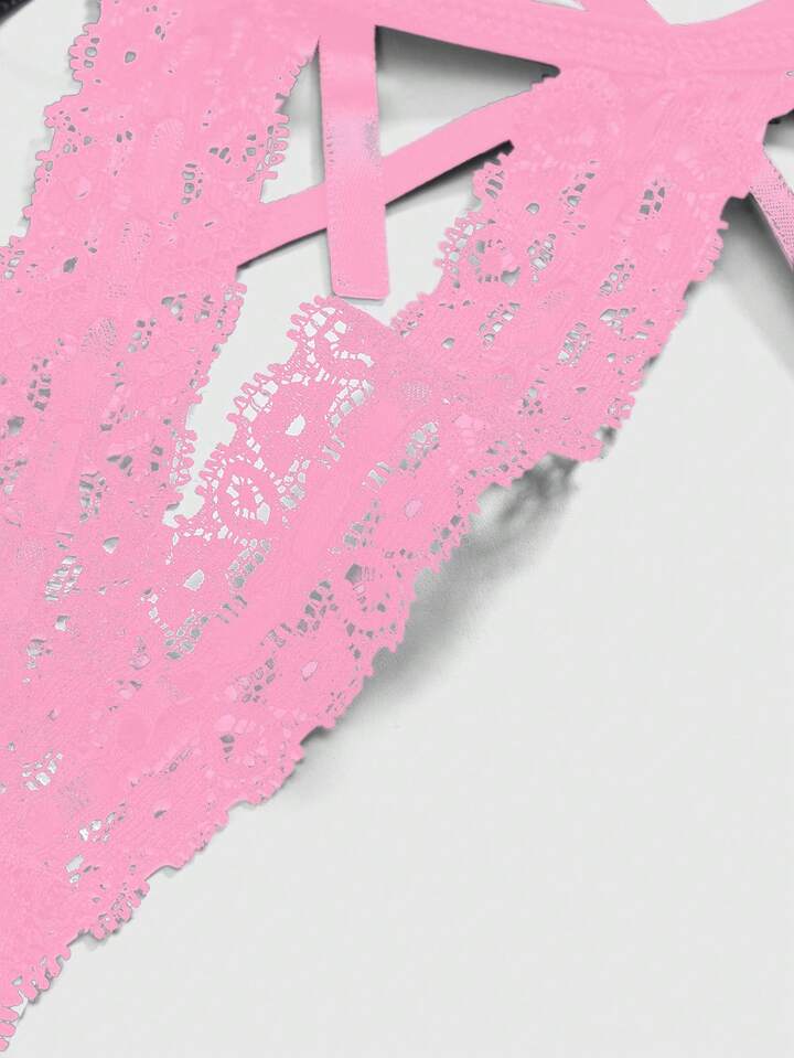 Goth Conjunto de lencería sensual con encaje y moño para mujer