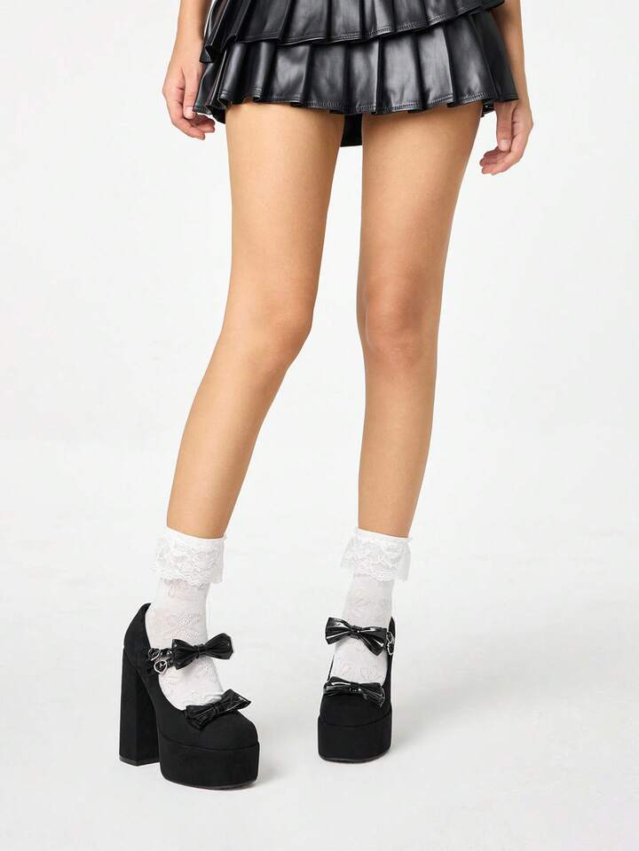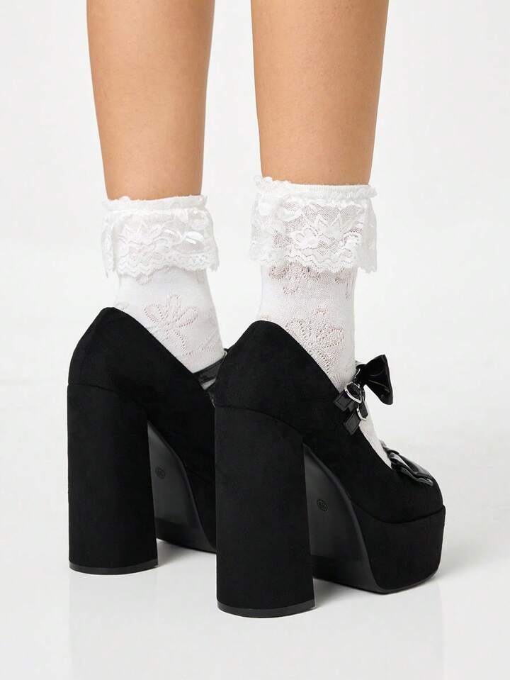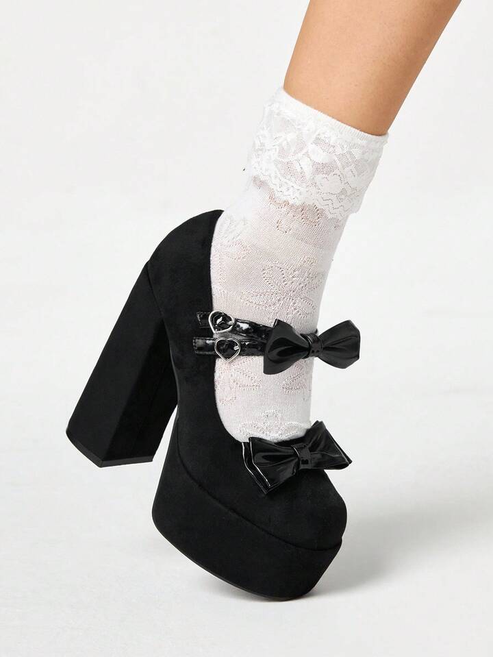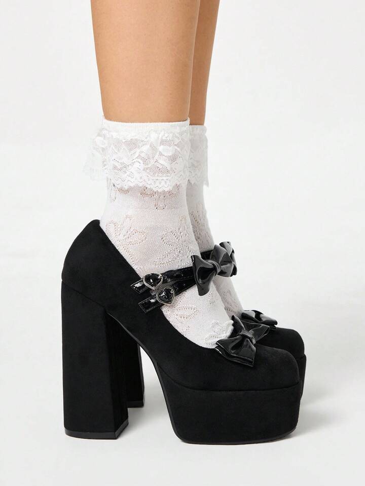Goth Zapatos de tacón alto con plataforma y diseño bordado de moño, para mujer, para primavera/otoño