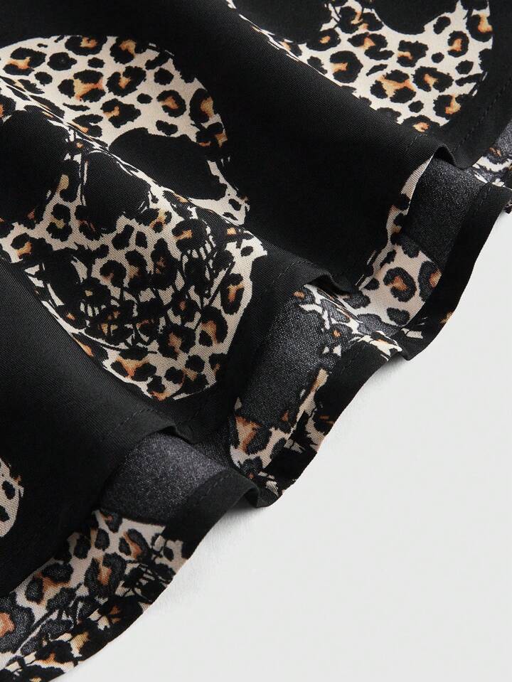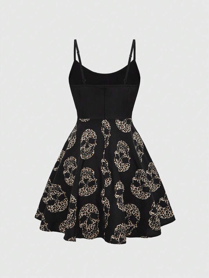 Goth Vestido De Mujer Para El Verano Con Tirantes Espagueti Y Estampado De Leopardo Y Patrón De Calavera