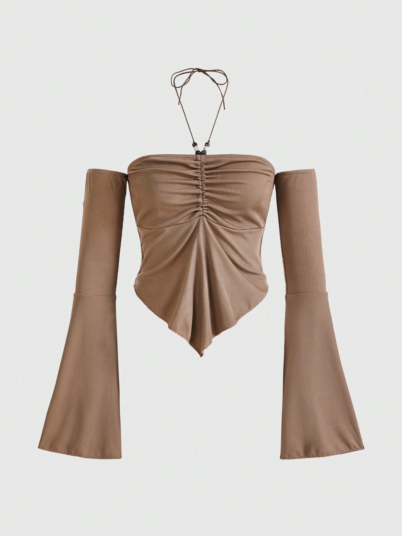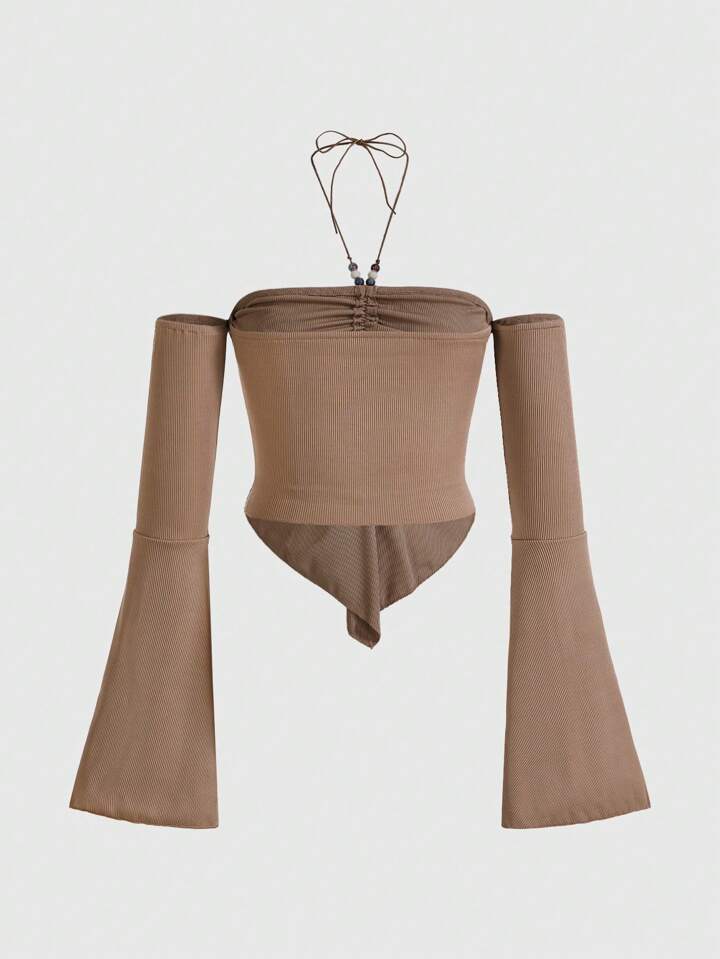 Goth Top Vintage Sin Hombros De Color Caqui Para Mujeres, Con Cuentas Y Halter