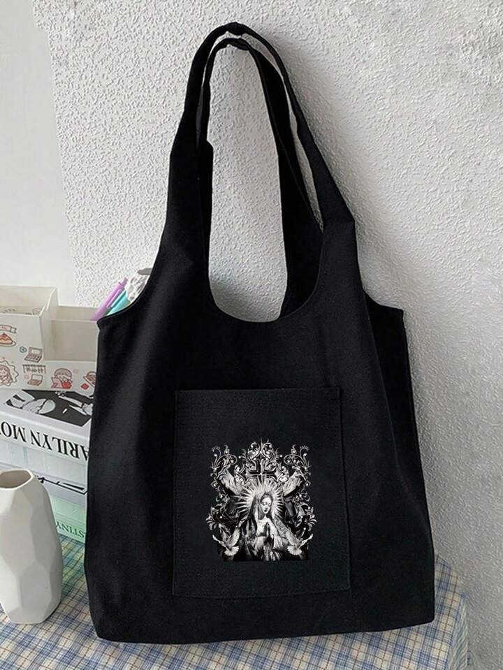 Goth Bolso de tela tipo tote grande con gráfico de la Virgen María, adecuado para uso diario