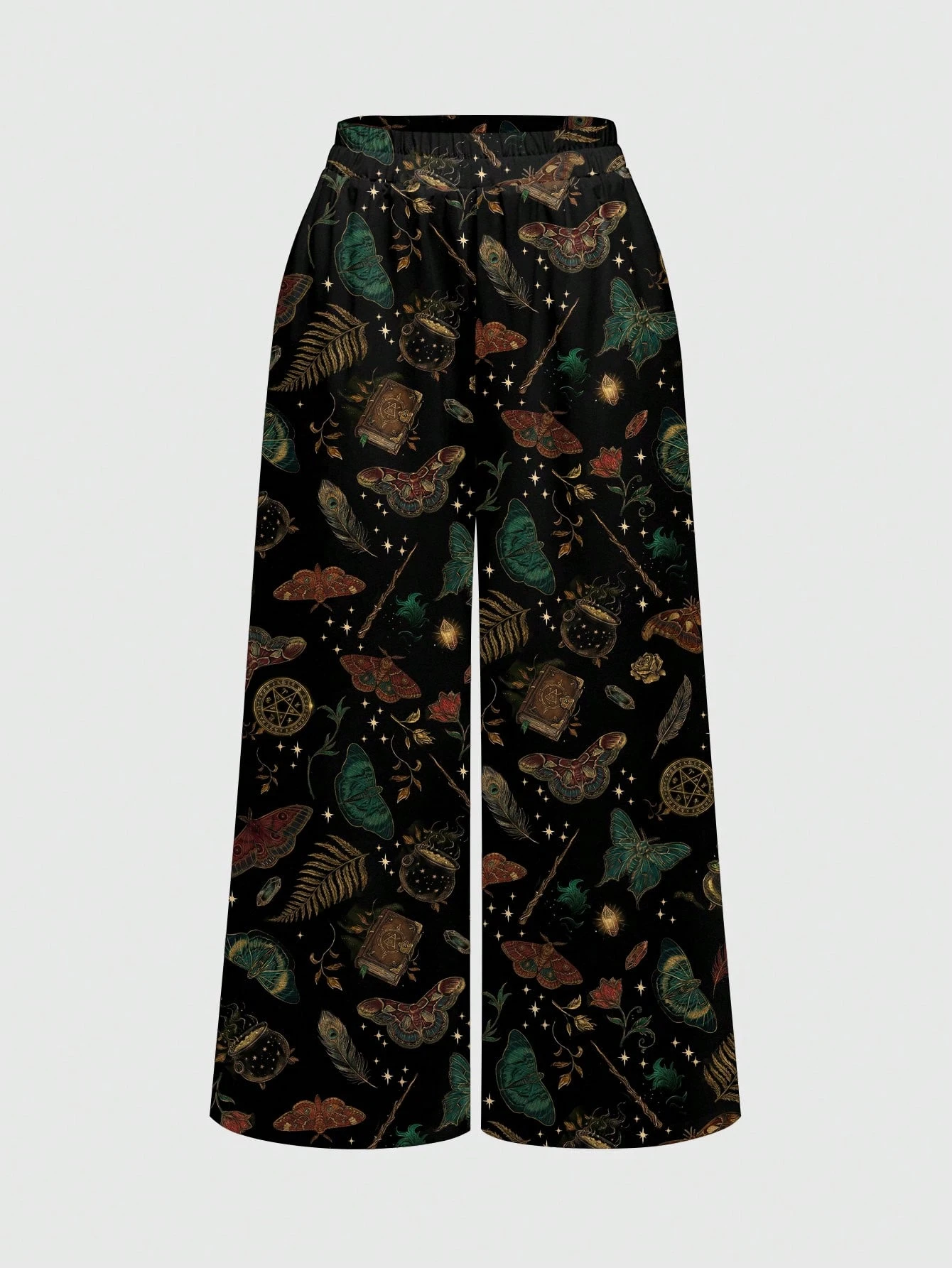 Goth Pantalones de pierna ancha para mujer, Academia Misteriosa de Magia Oscura, Misterioso Primavera de Luna y Estrellas, Marrón