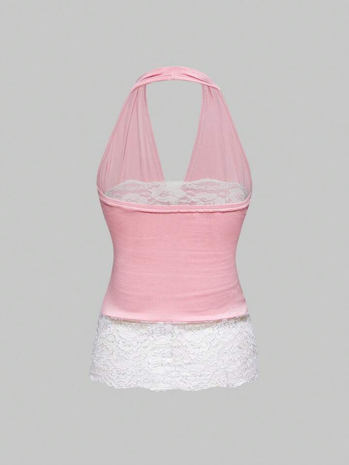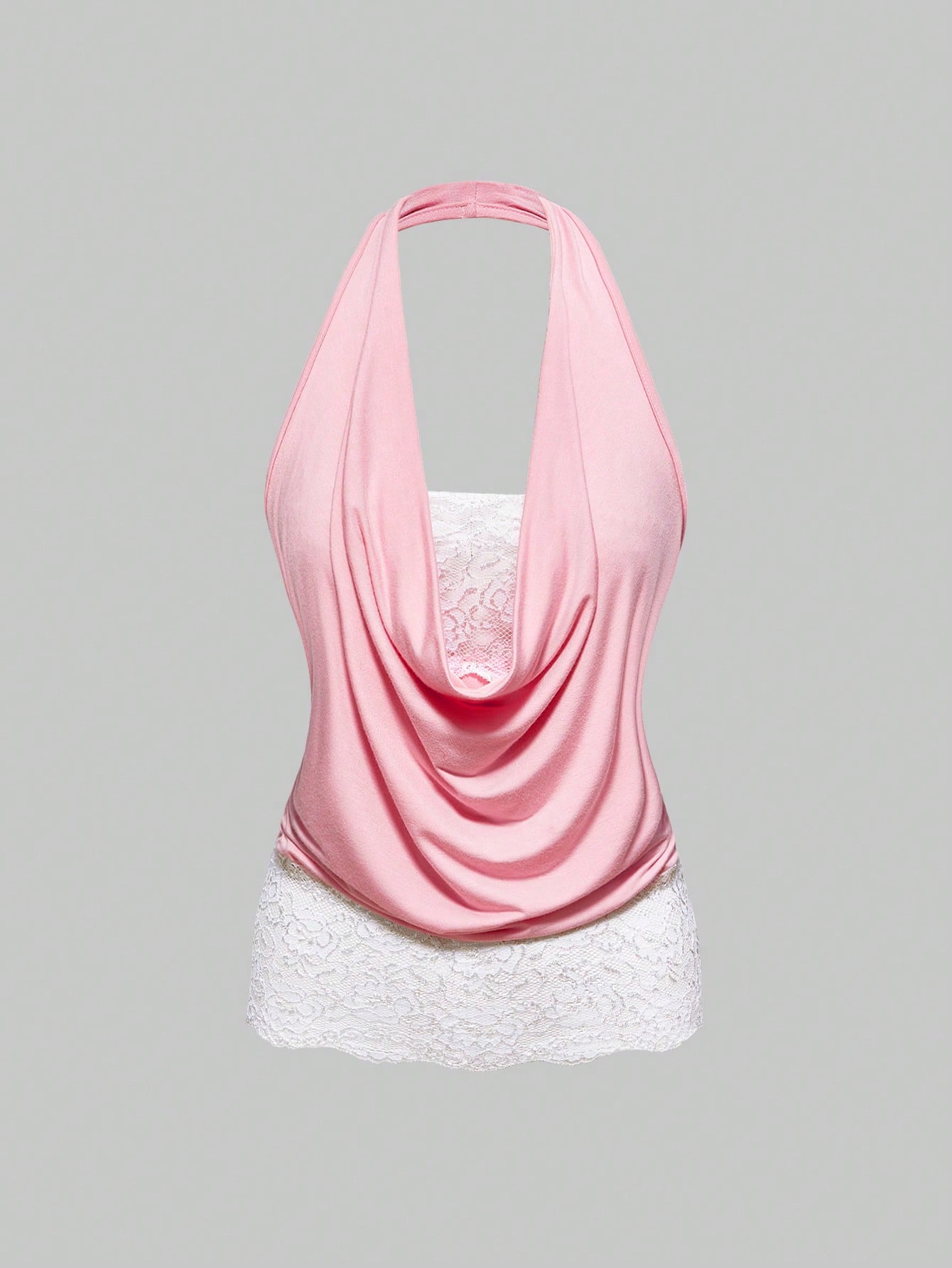 Goth Top sin mangas con cuello drapeado de encaje y contraste en estilo retro punk Y2K