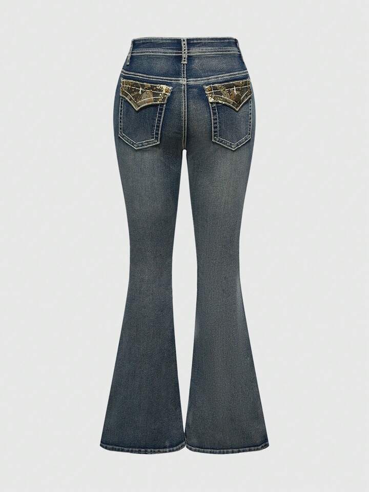 Goth Jeans acampanados con parches de ramas de árbol, camuflaje y cristales, estilo retro Y2K punk