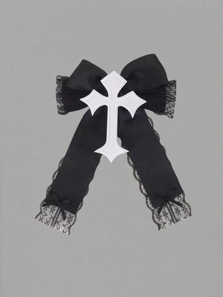 Goth Pasadores de pelo con encaje de mariposa y cruz gótica, aptos para uso diario