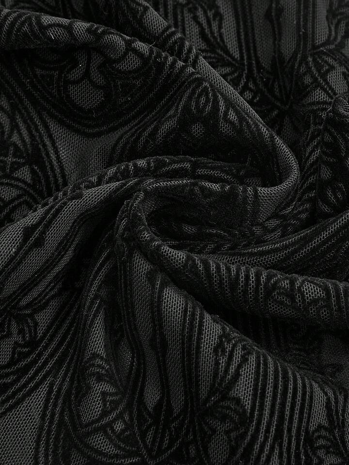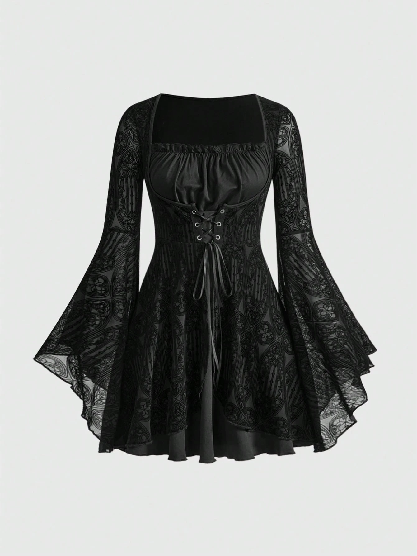 Goth Vestido de mujer con parche de encaje de malla con cruz floreada de estilo gótico y cordones en la cintura