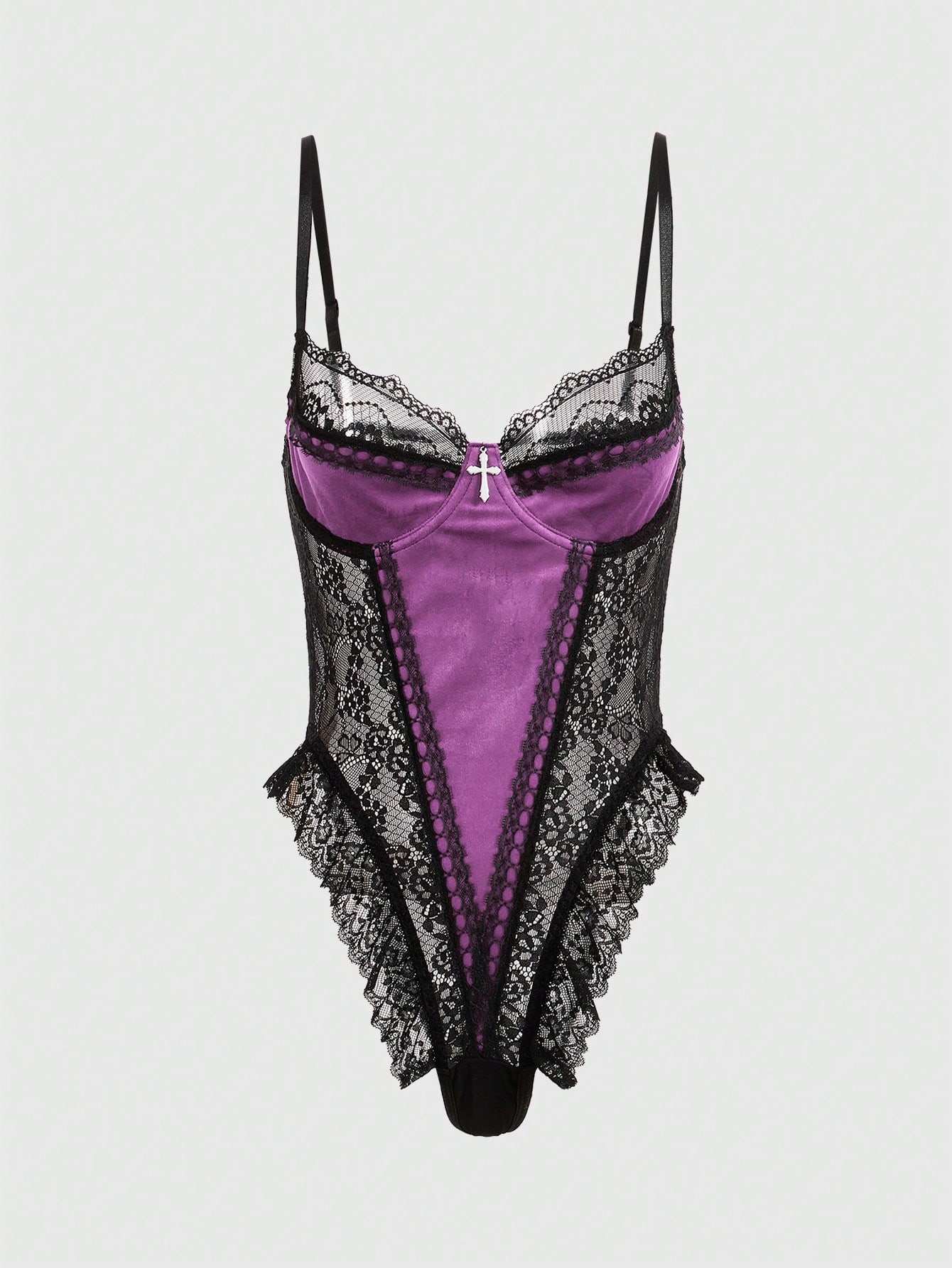 Goth Body de terciopelo y encaje en contraste con decoración de cruz gótica