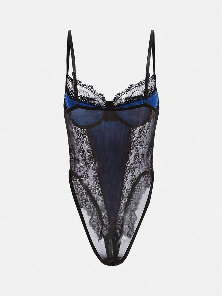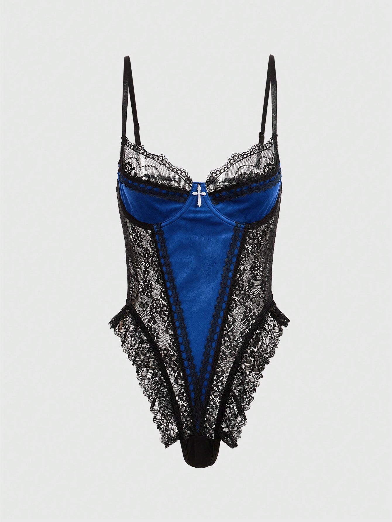 Goth Body de terciopelo y encaje en contraste con decoración de cruz gótica