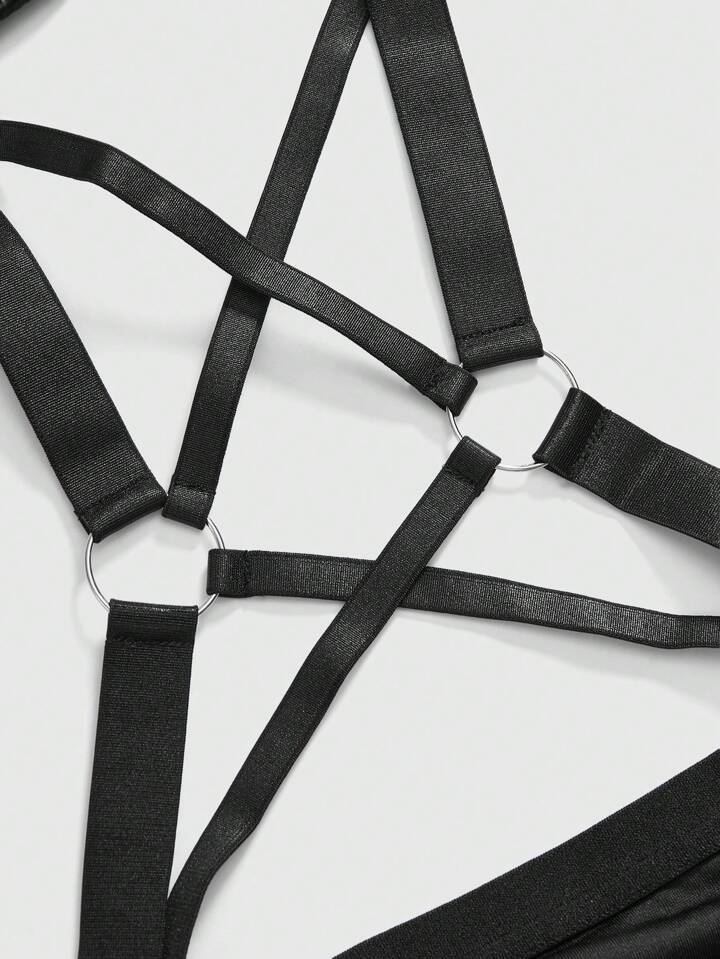 Goth Conjunto de lencería con mono a cuadros de academia oscura gótica y corbata