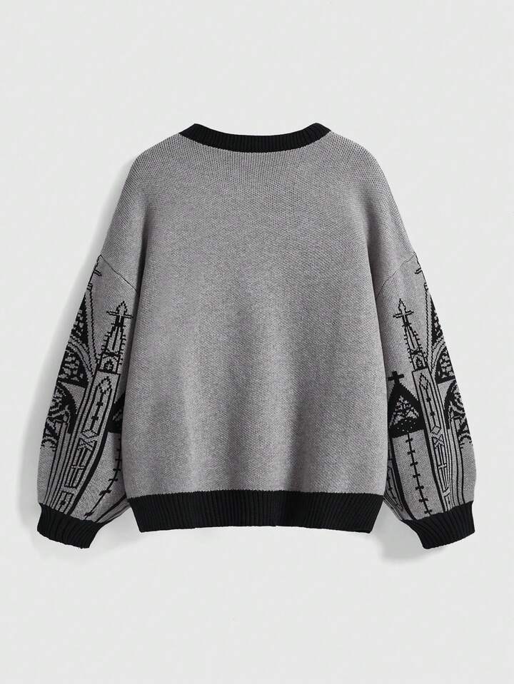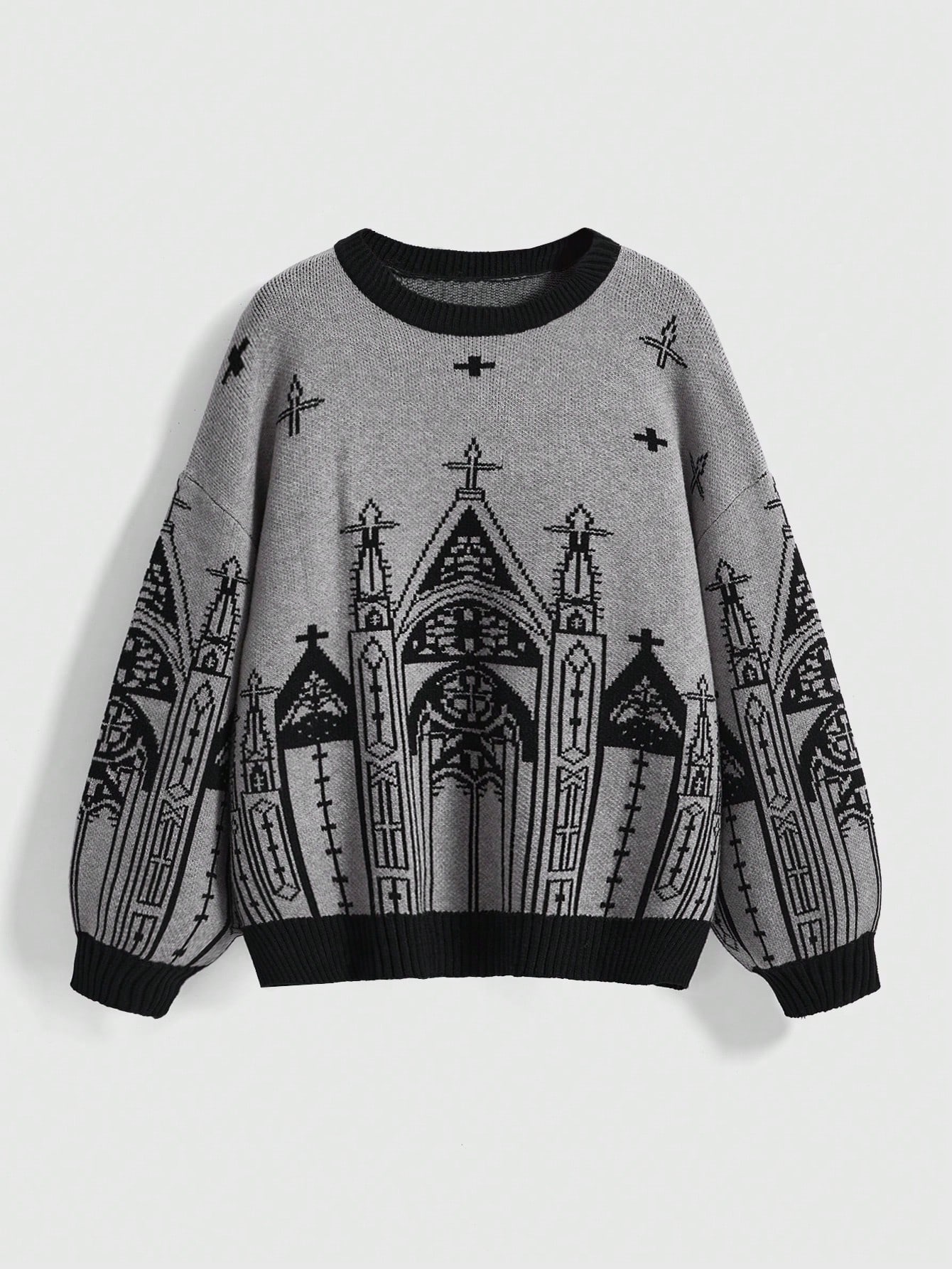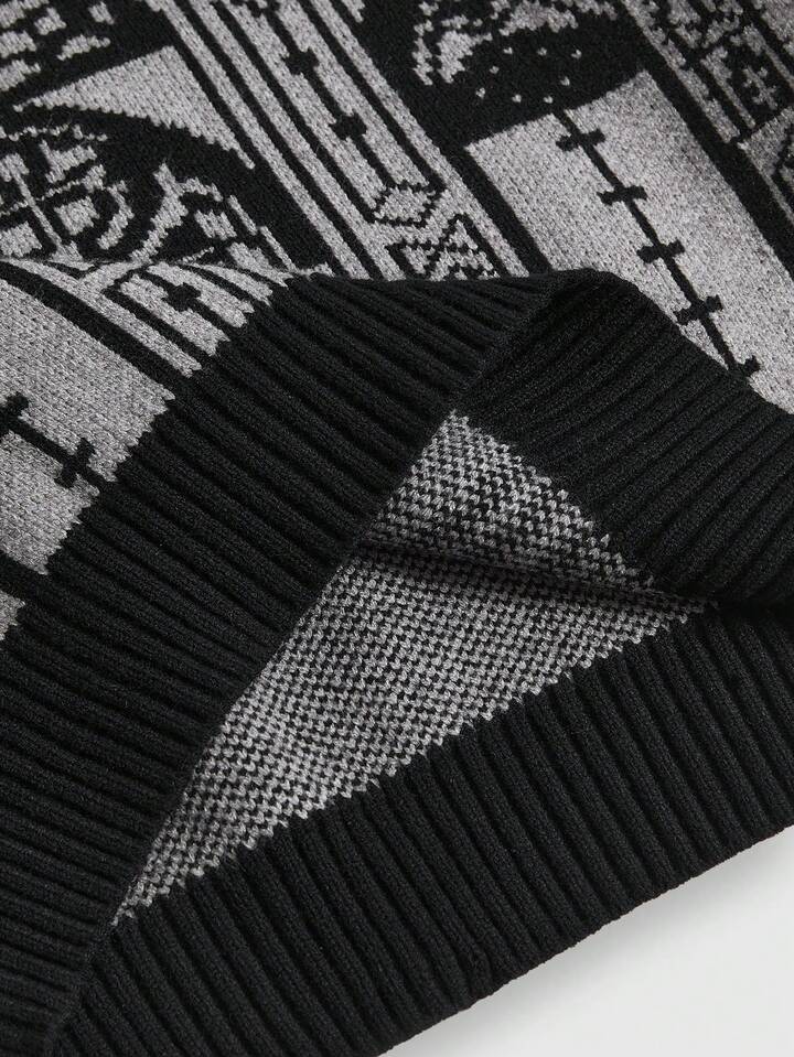 Goth Suéter holgado de mujer con cuello alto, manga de linterna y cruz de castillo, estilo gótico oscuro de Halloween