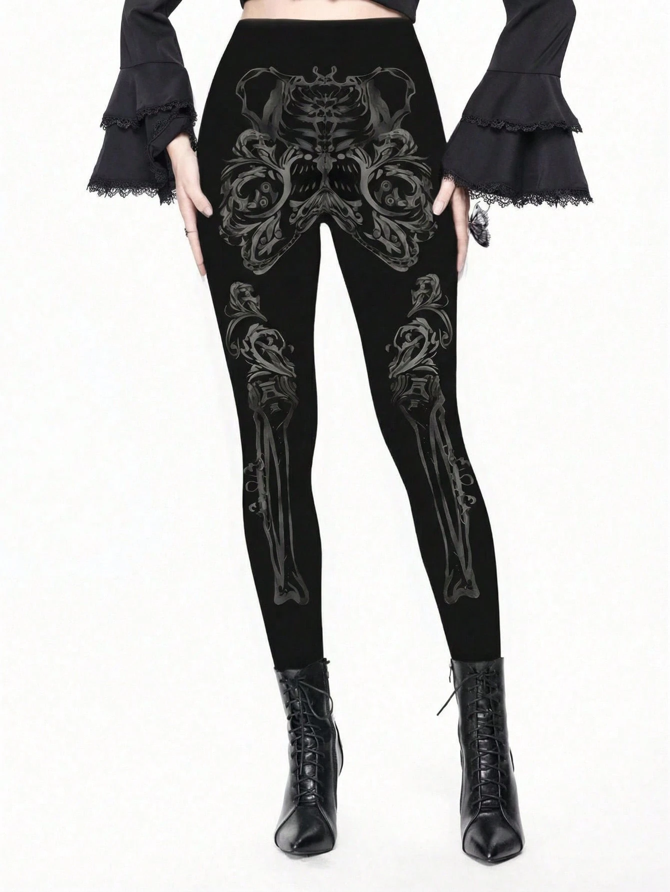 Goth Leggings elásticos de talla grande para mujer con estampado de calavera gótica oscura y misteriosa y jardín floral con serpiente