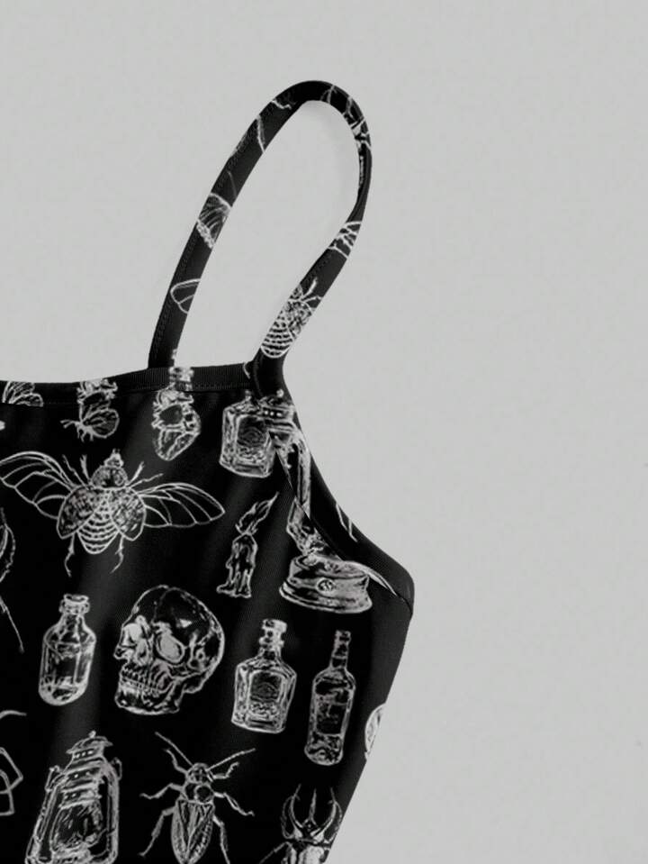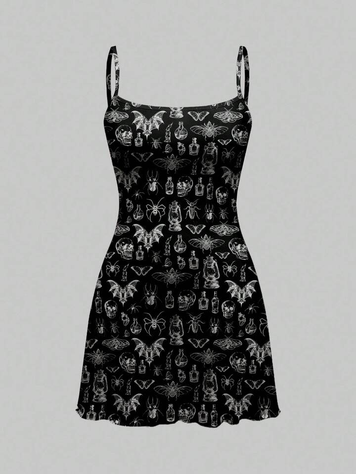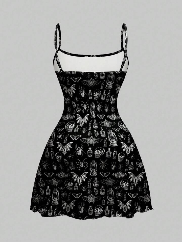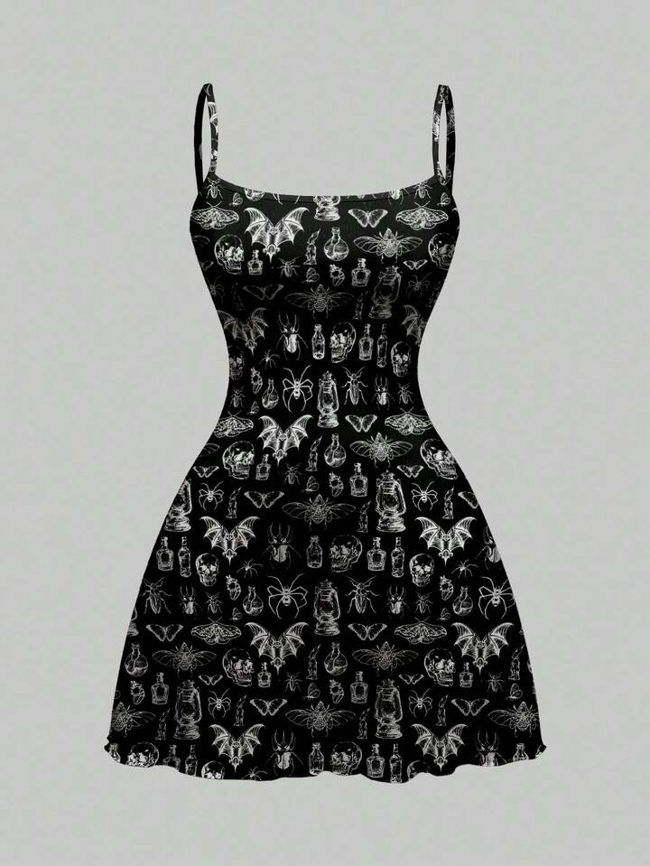 Goth Vestido mini gótico y oscuro con diseños de calavera, polilla, murciélago y araña para mujeres, Halloween