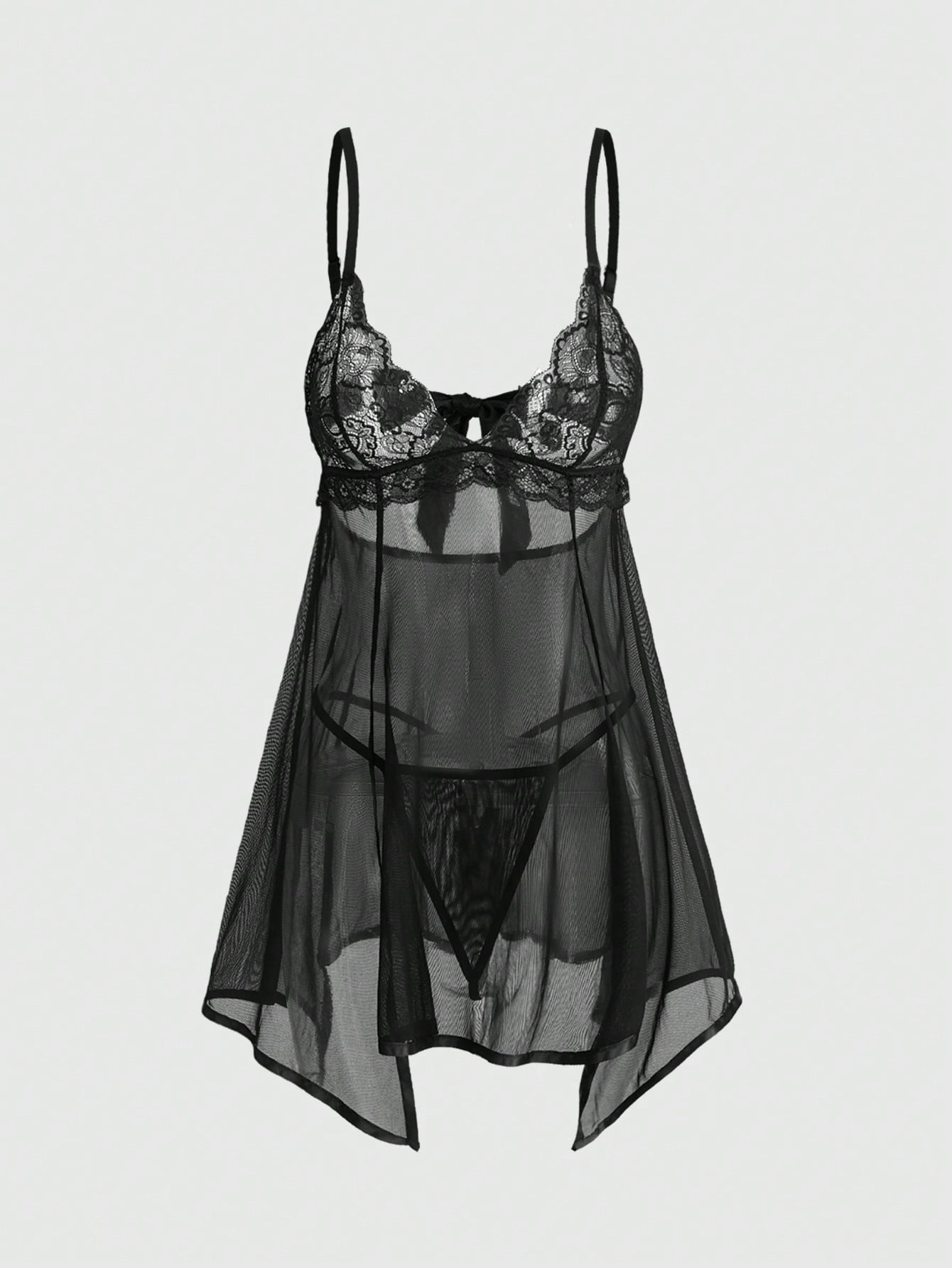 Goth Conjunto de camisón y tanga sexy con encaje floral y malla de estilo gótico