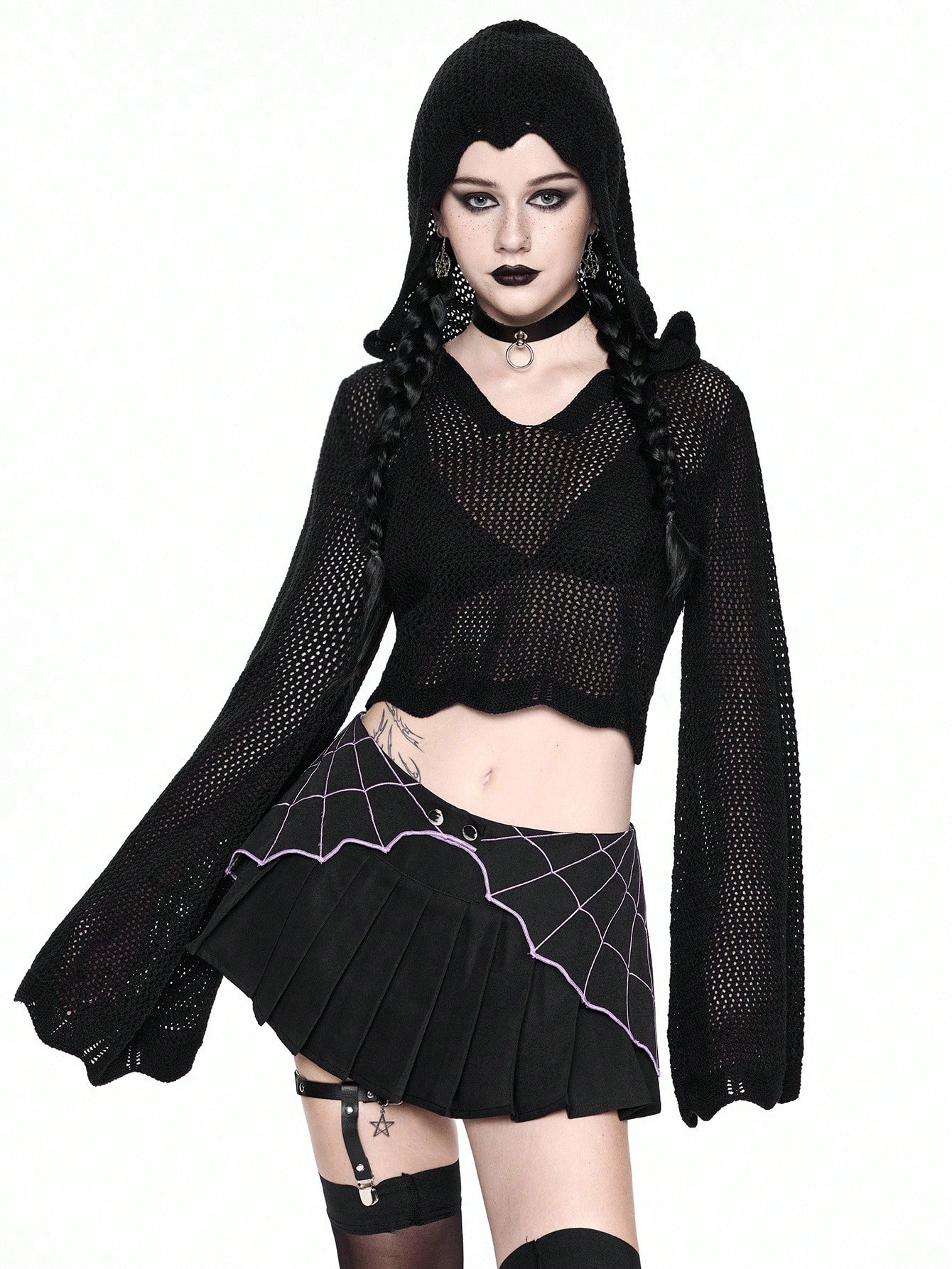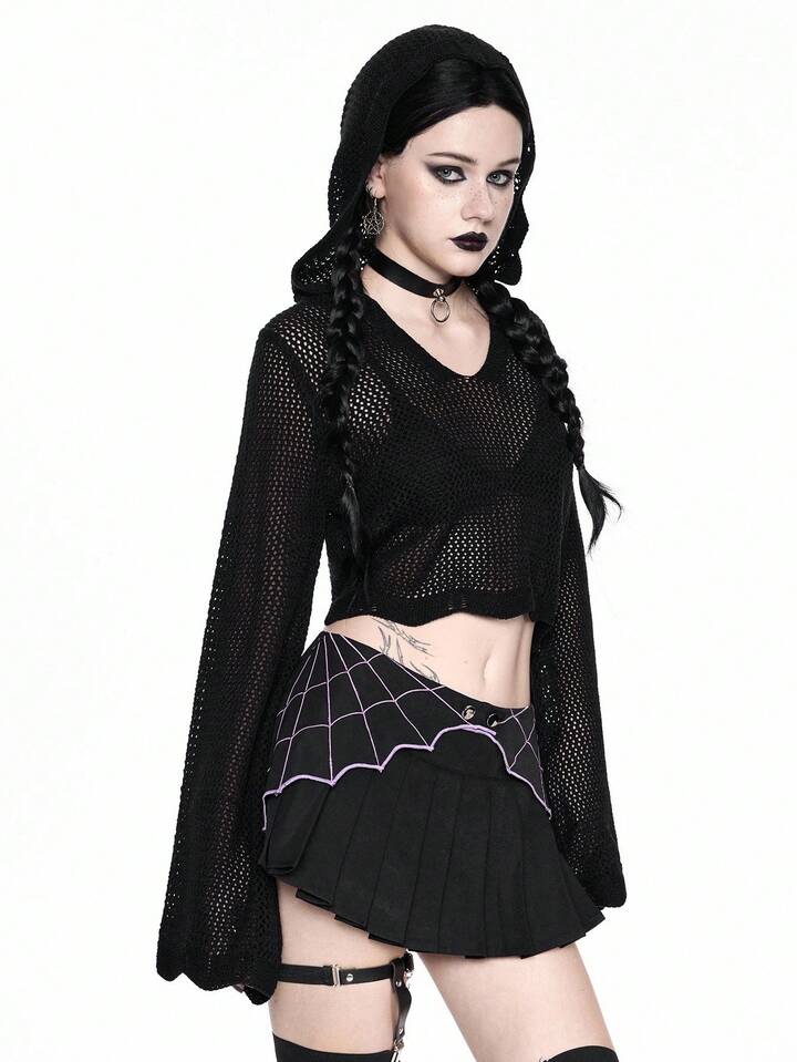 Goth Sudadera con capucha estilo gótico con mangas acampanadas, Halloween