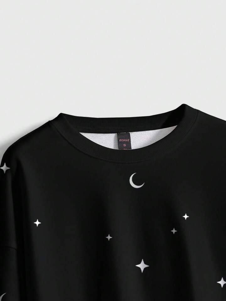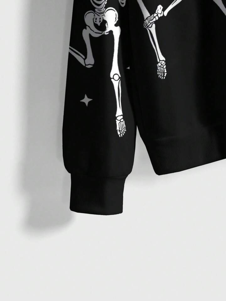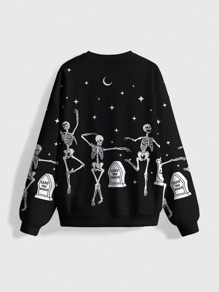 Goth Sudadera con cuello redondo de estampado completo con esqueleto bailando, luna y estrellas del cementerio gótico de terror para mujer, otoño/invierno/primavera