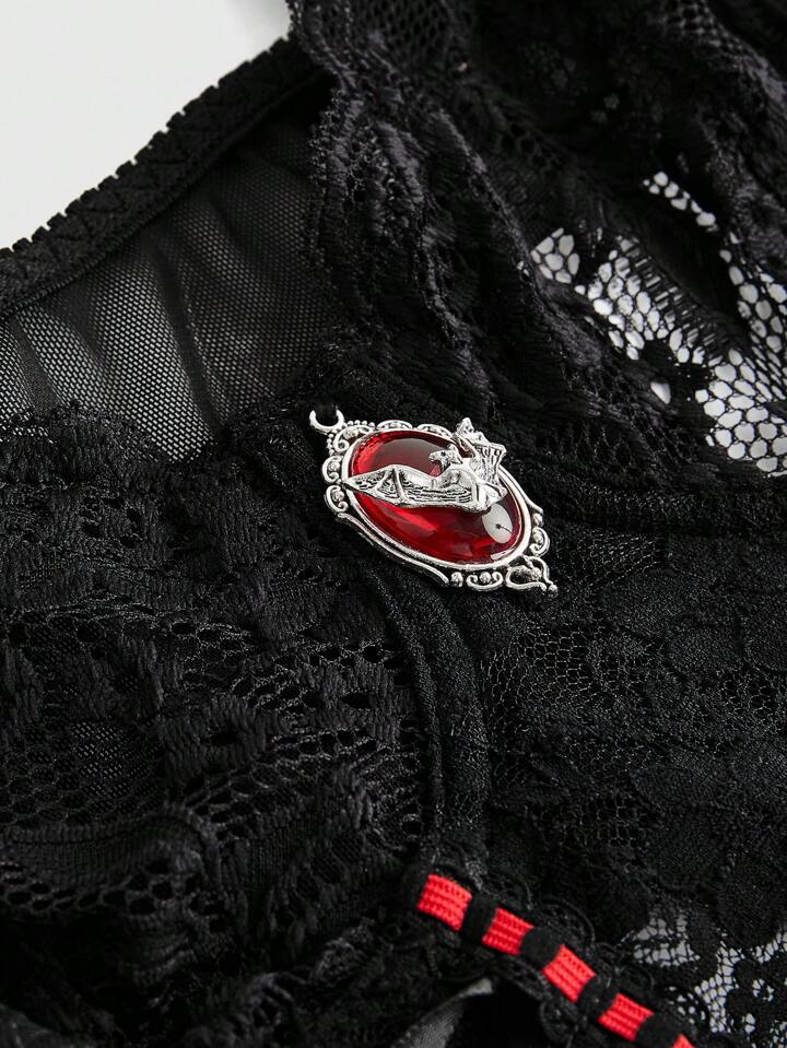 Goth Mono sexy con varillas y encaje estilo gótico