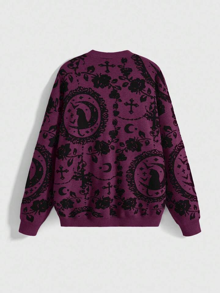 Goth Sudadera oscura con estampado completo de gato negro misterioso de la luna del palacio gótico, adecuada para Halloween