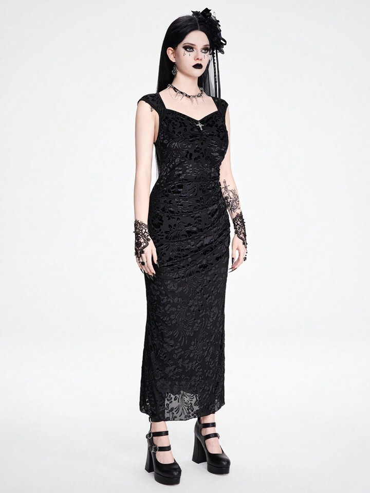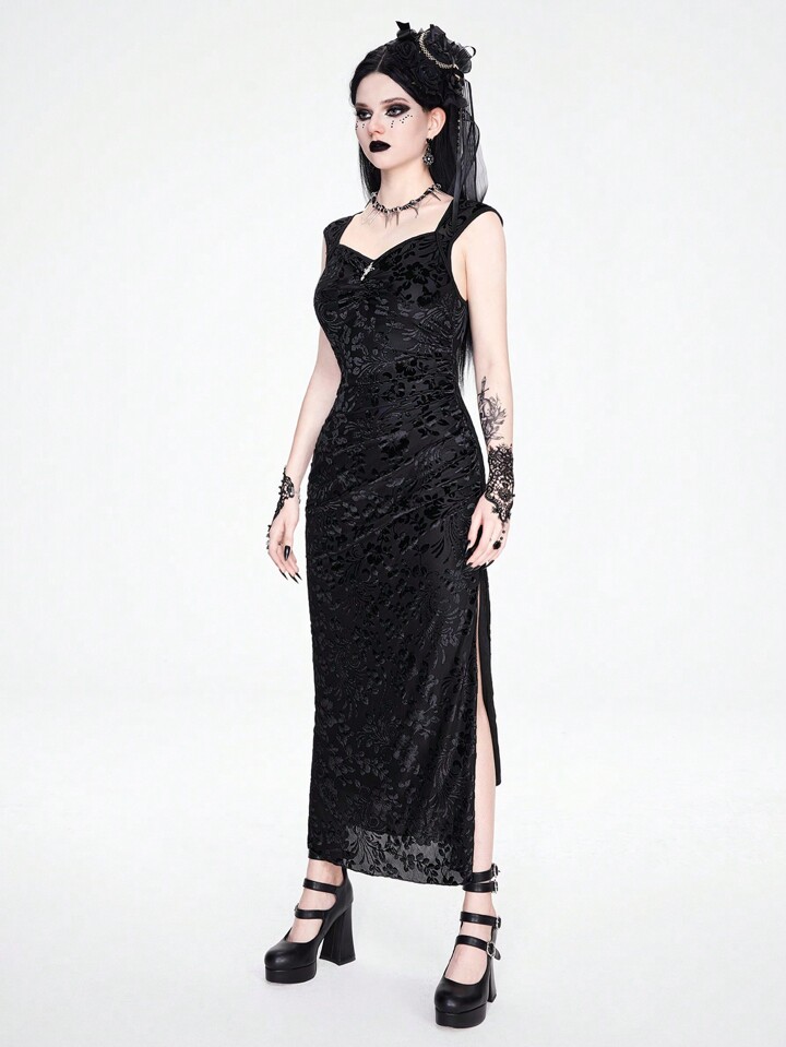 Goth Vestido gótico retro con espalda abierta, abertura lateral y cola de pez, vestido de gala largo de terciopelo para mujeres, para eventos formales de noche