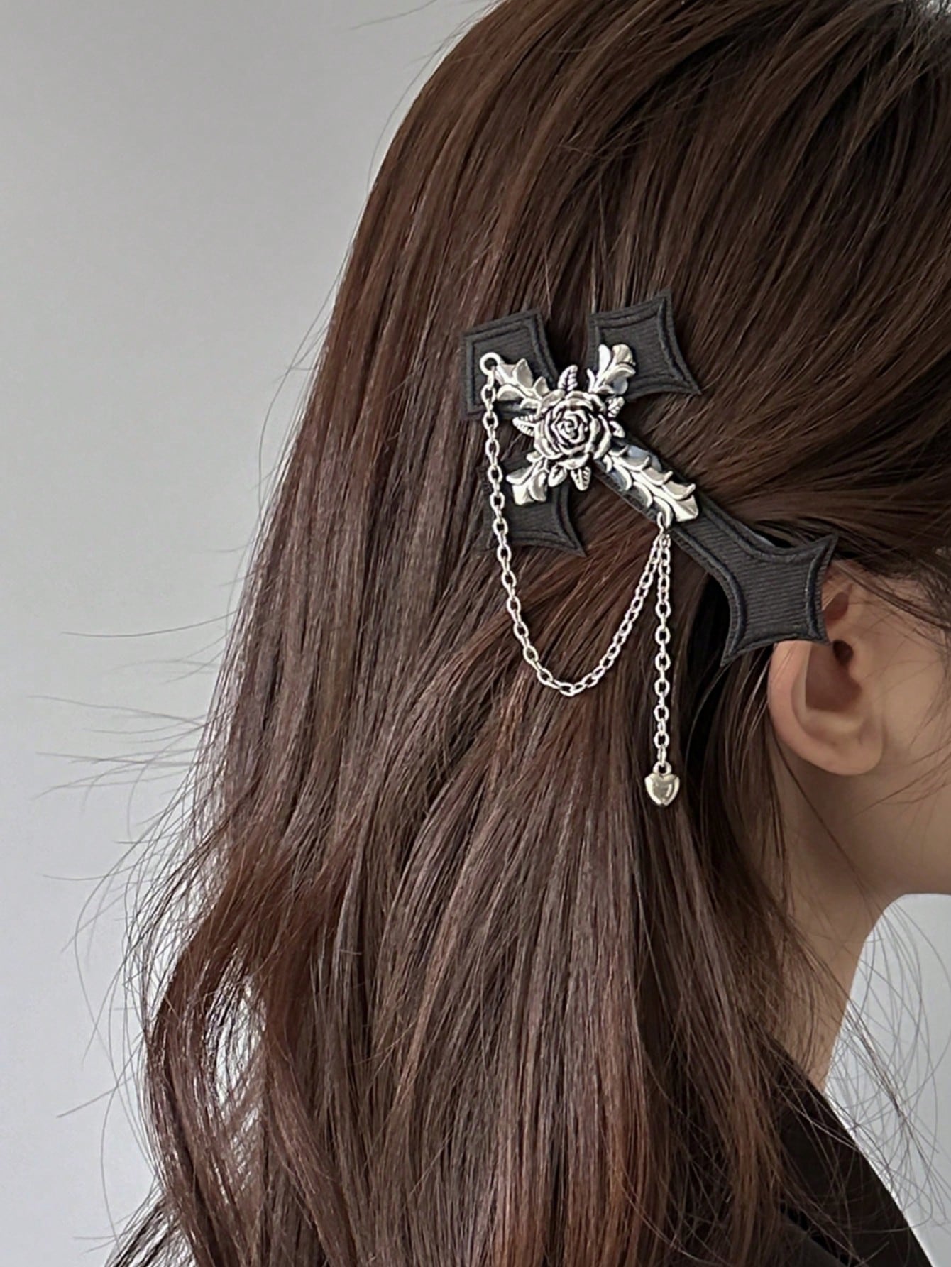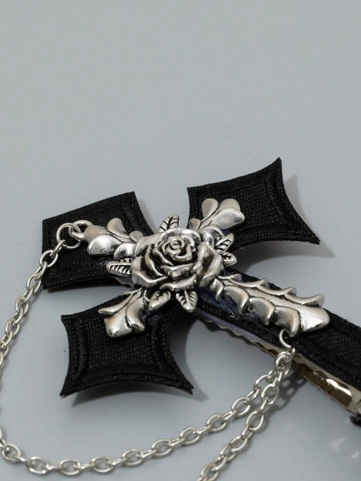 Goth Pinza de pelo con cruz y diseño de espinas de rosa gótico, de diseño minimalista y multifuncional