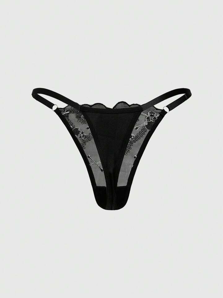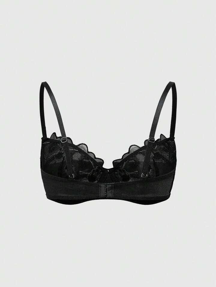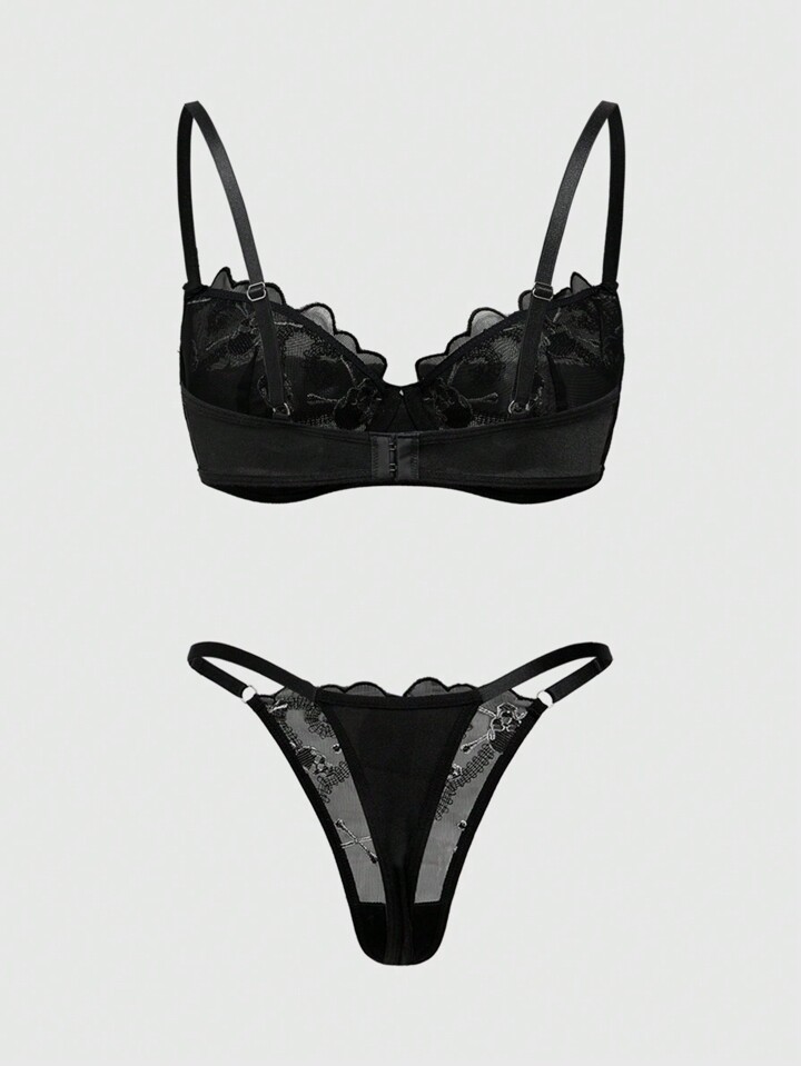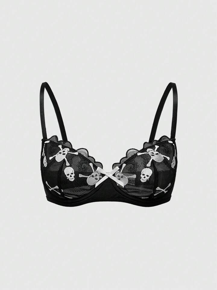 Goth Conjunto de sujetador y pantys de encaje con esqueleto gótico y aros