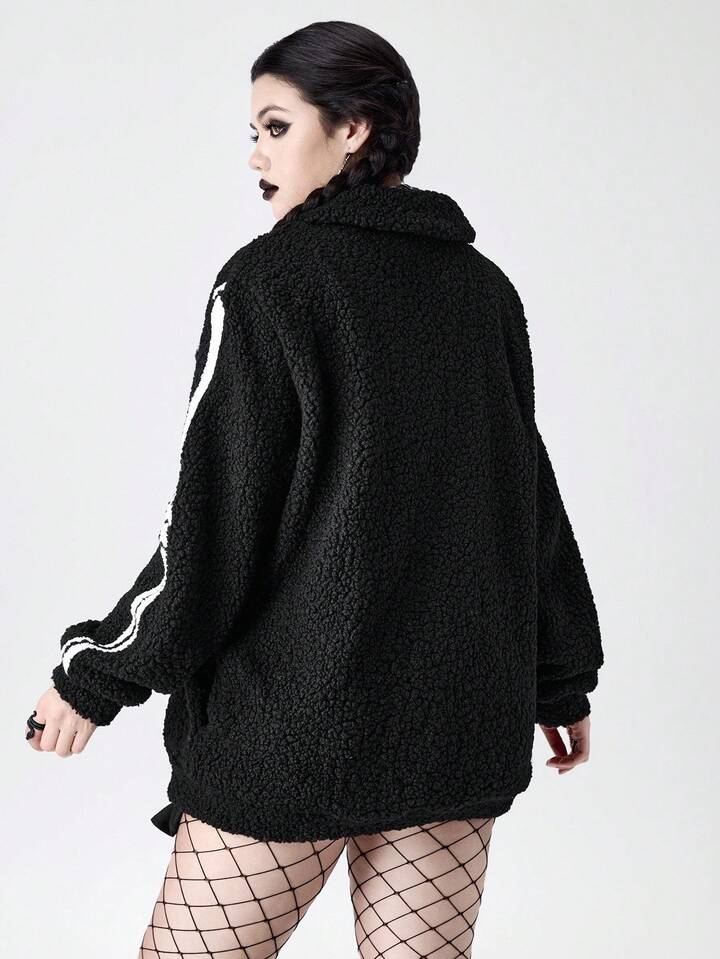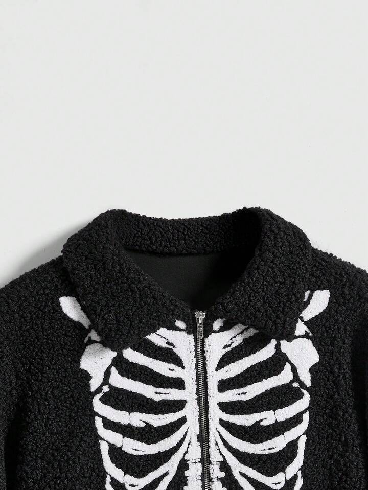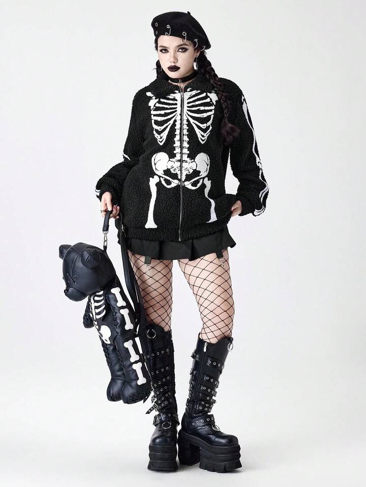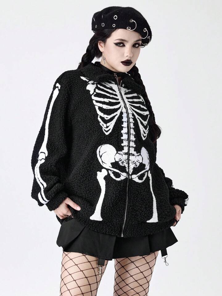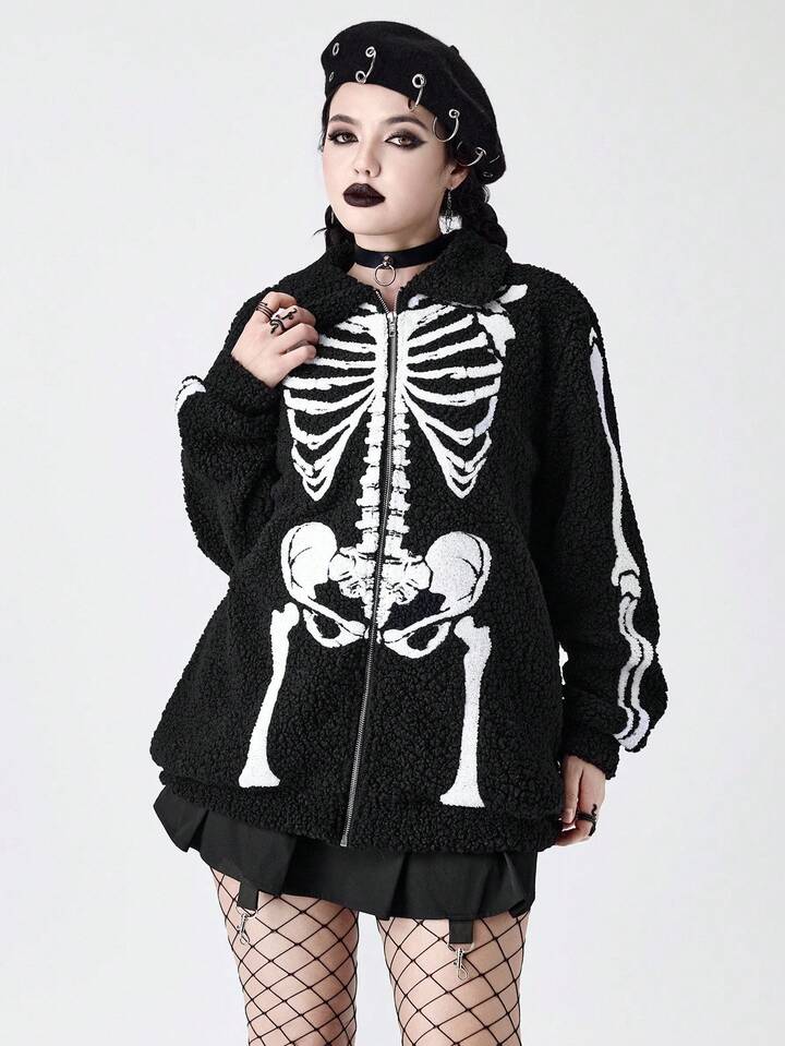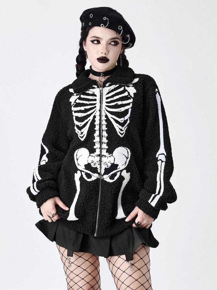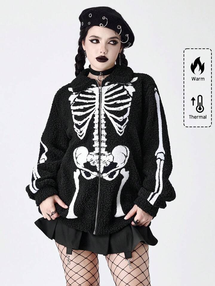 Goth Chaqueta de mujer de forro polar con estampado de esqueleto gótico para Halloween