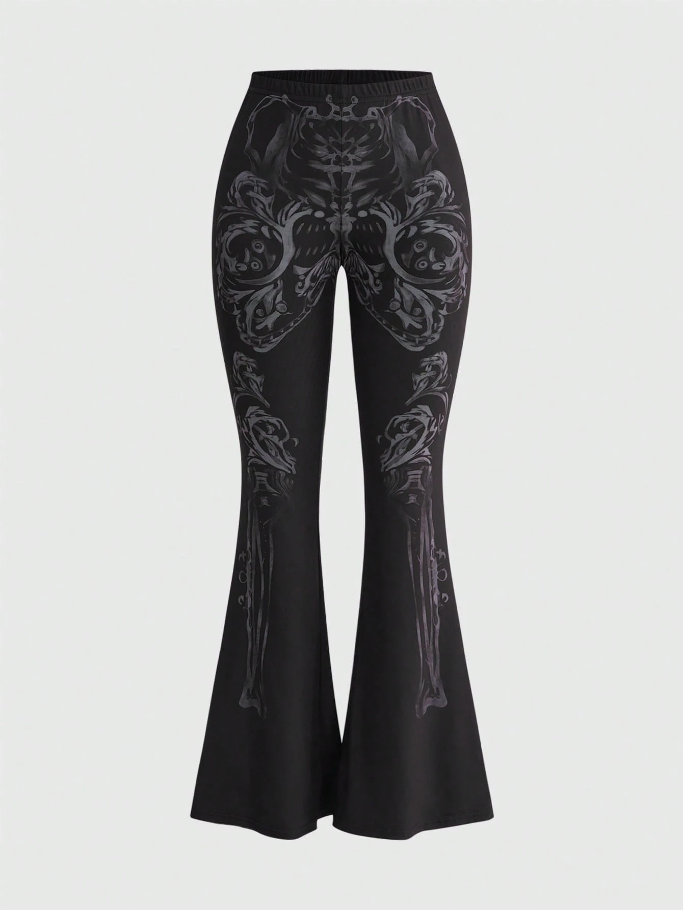 Goth Pantalones acampanados transparentes con estampado de esqueleto gótico para mujeres