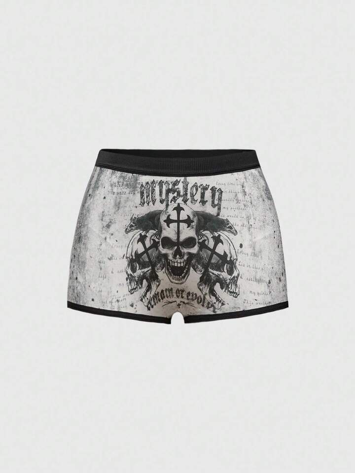 Goth Calzoncillos tipo bóxer con estampado de calavera y cruz gótica