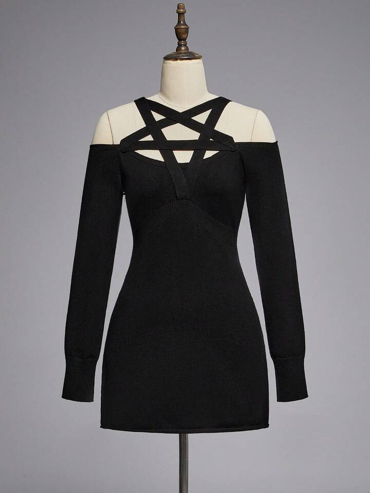 Goth Suéter asimétrico de mujer con hombros descubiertos, estilo gótico