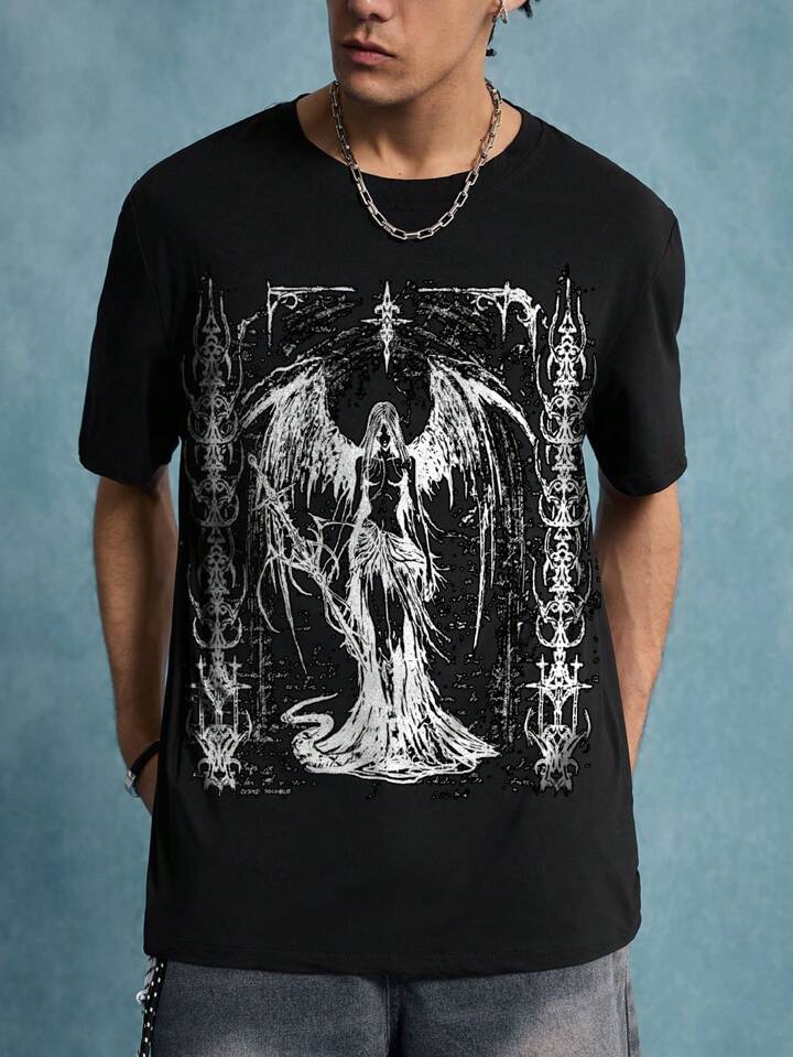 Goth Camiseta negra casual de estilo gótico, diseño oscuro e inspirado en lo gótico que enfatiza el horror y lo