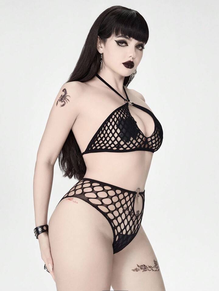 Goth Conjunto de lencería sexy de estilo gótico con malla elástica y metal para mujeres