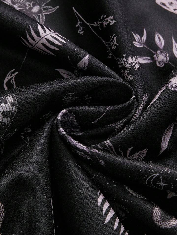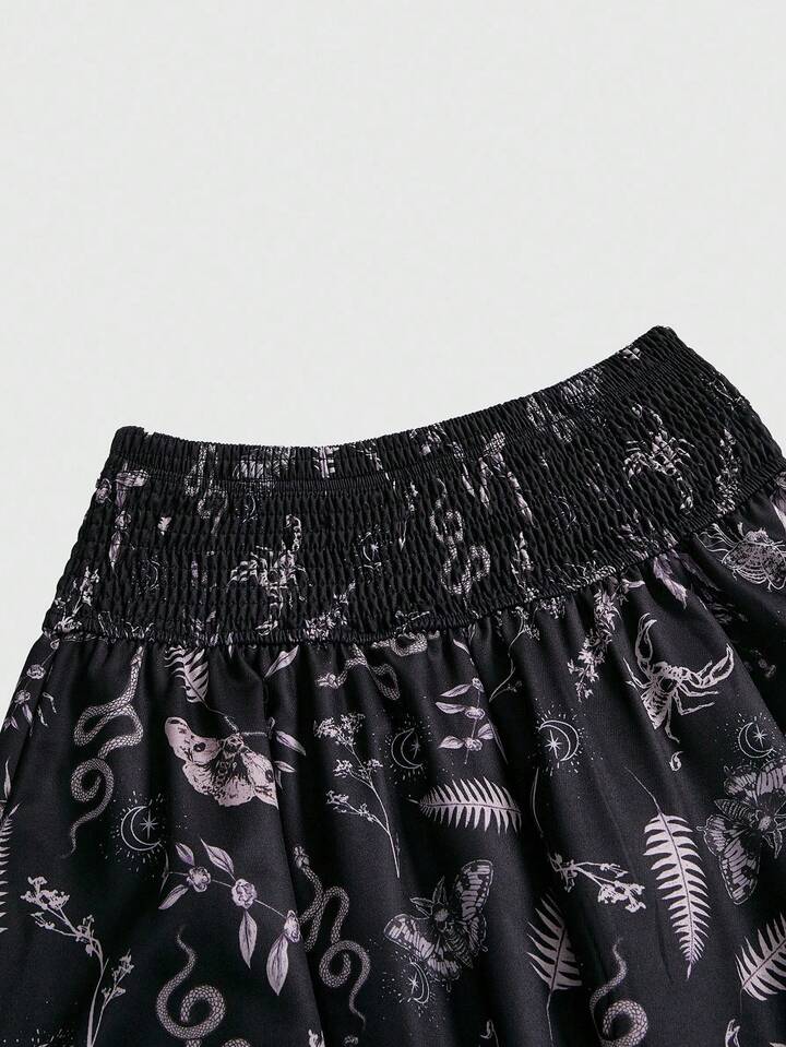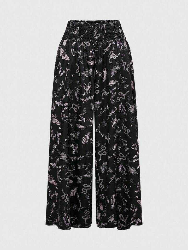 Goth Pantalones sueltos de mujer con cintura elástica y estampado floral de estilo gótico