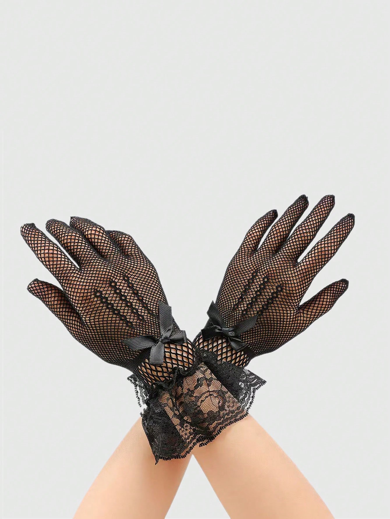 Guantes de malla de estilo gótico que cubren todo el dedo con moño, para uso diario y fiestas de mujeres