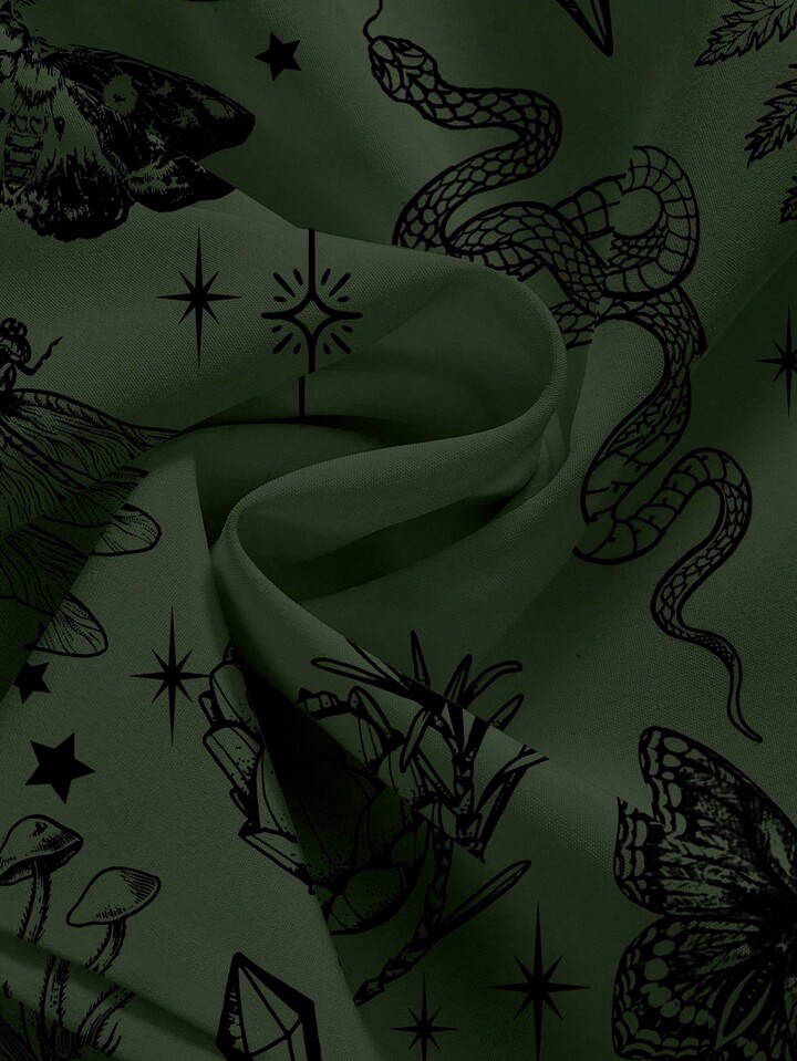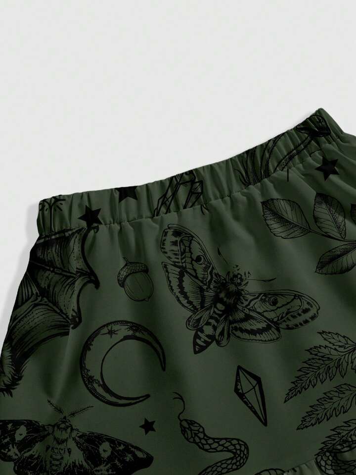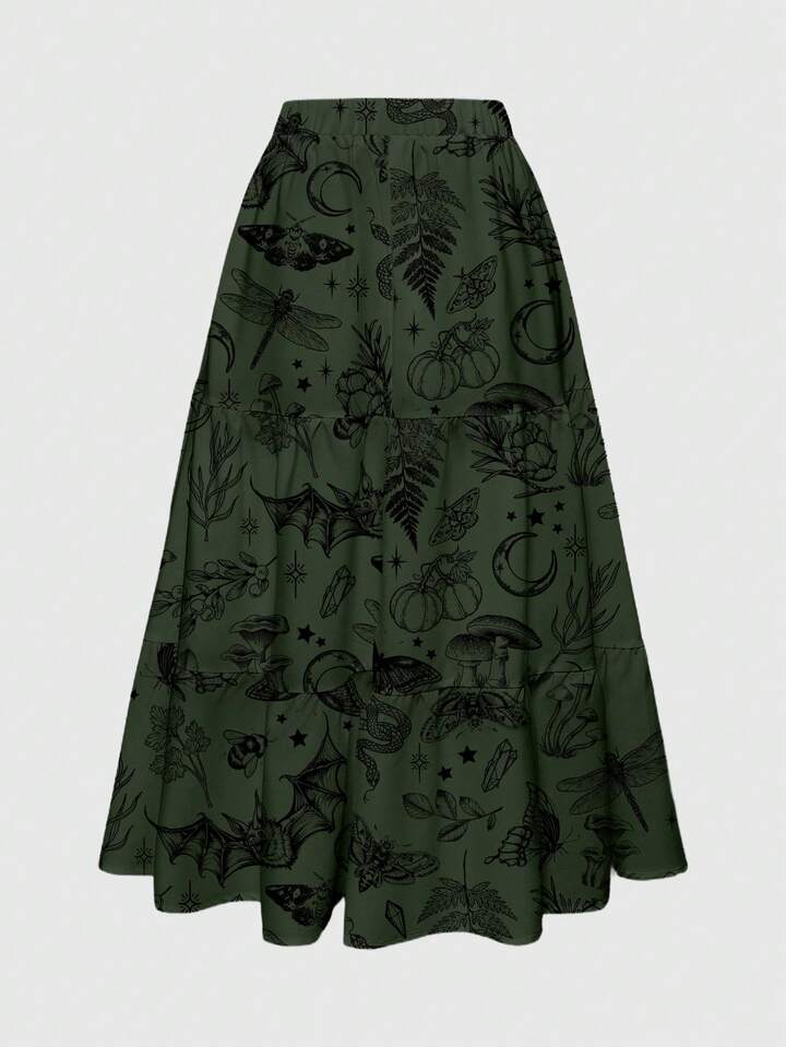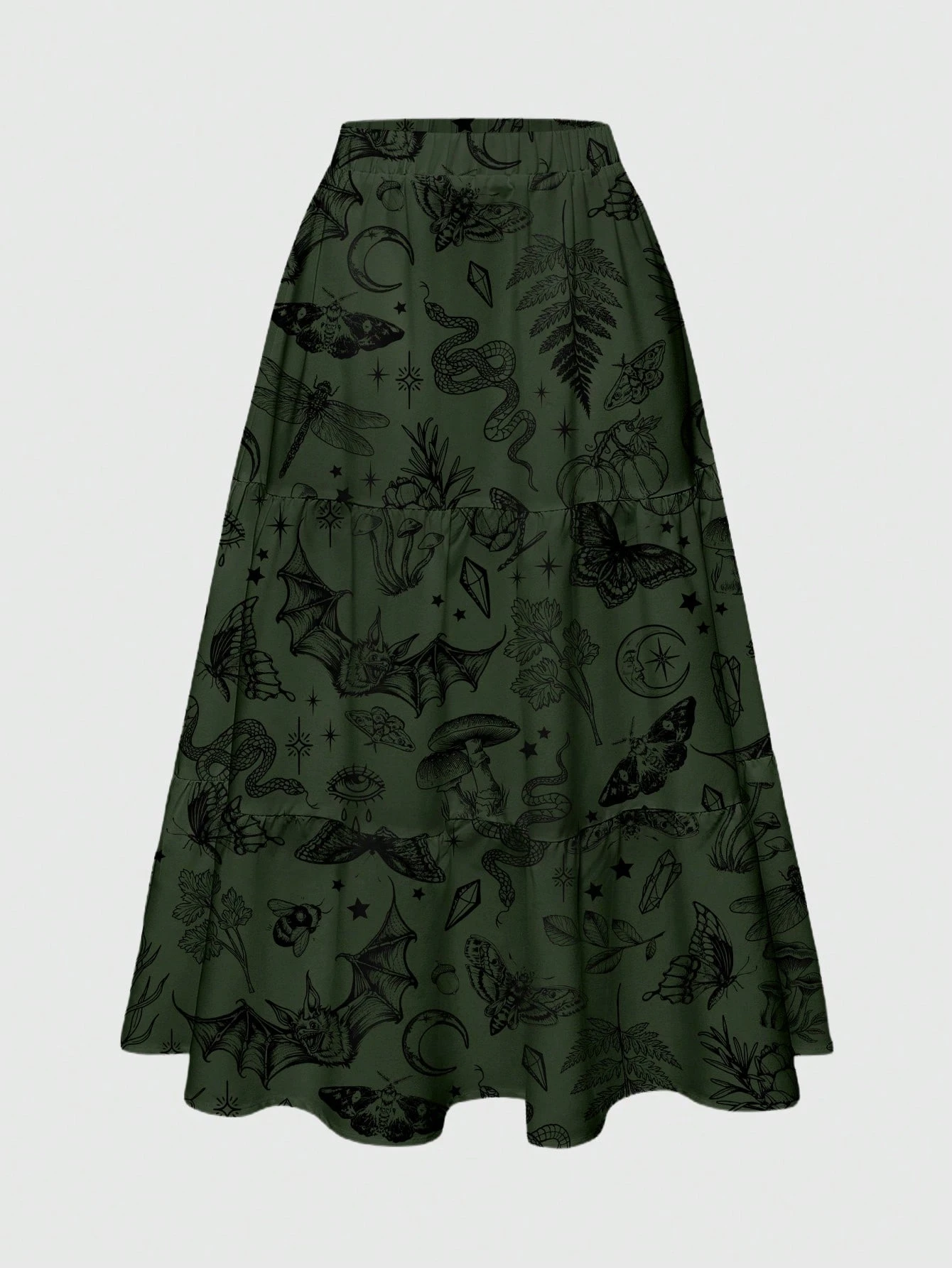 Goth Falda plisada de mujer con estampado de esqueleto verde y planta en estilo gótico, estampado completo, 3 capas
