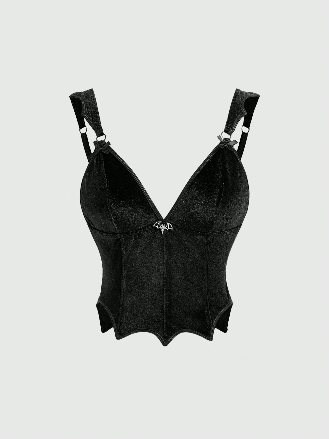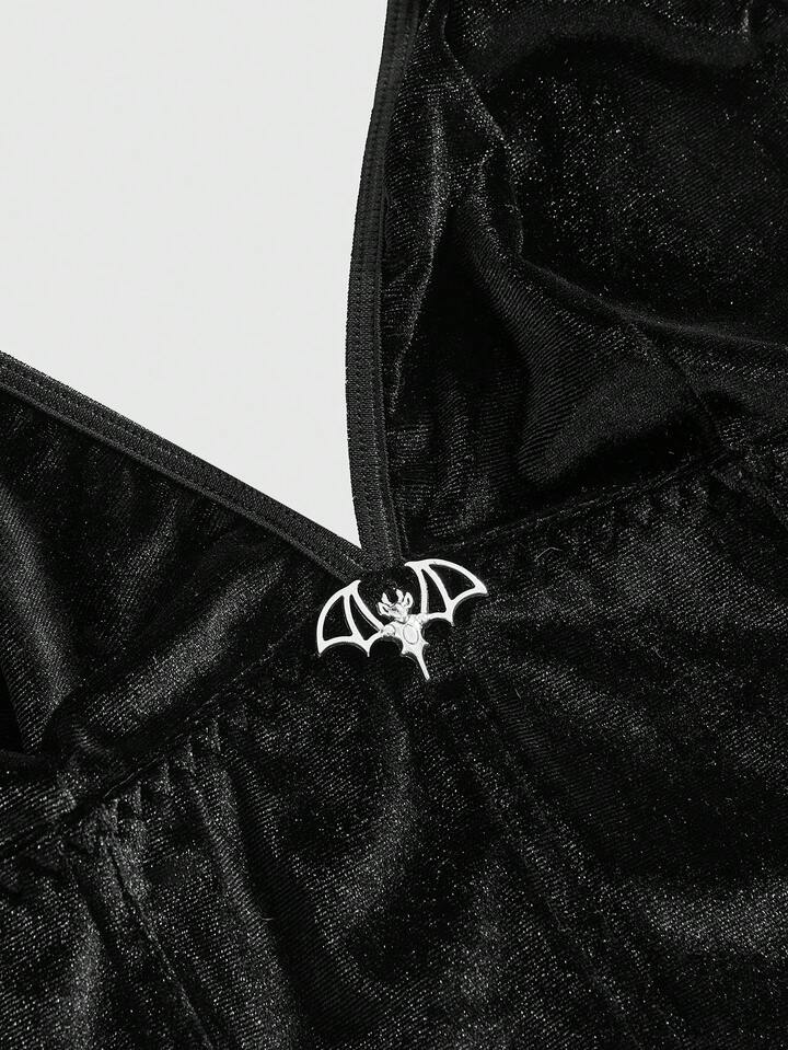 Goth Camiseta sin tirantes con colgante de murciélago de metal con estilo gótico de terciopelo para mujeres