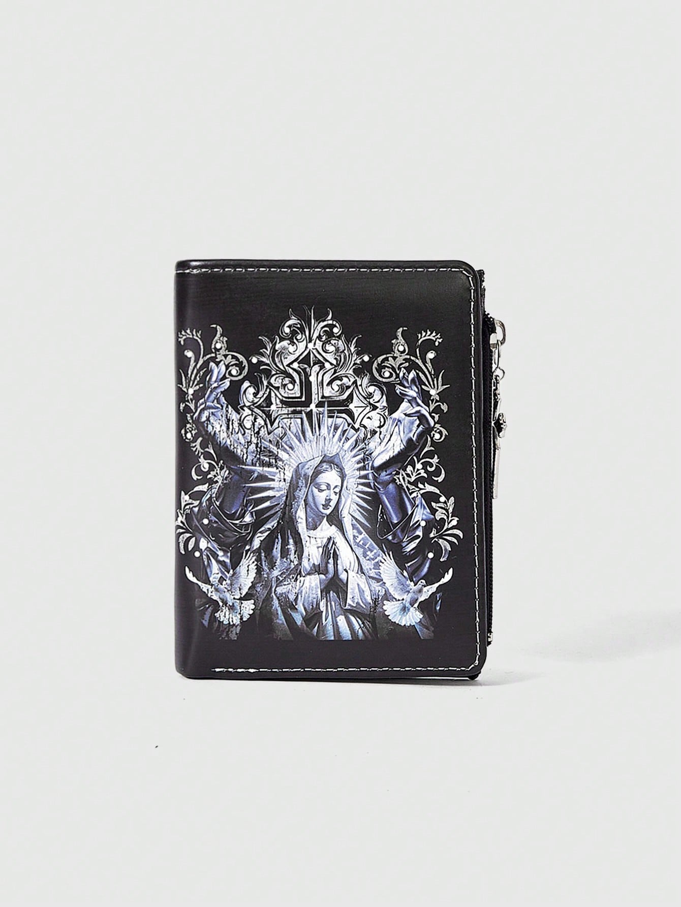 Goth Billetera de estilo gótico, monedero con cremallera con diseño creativo de pentágrama, gema de ojo de amor punk, lágrima de cristal, estrella, sol, espada, portador de tarjetas de moda casual