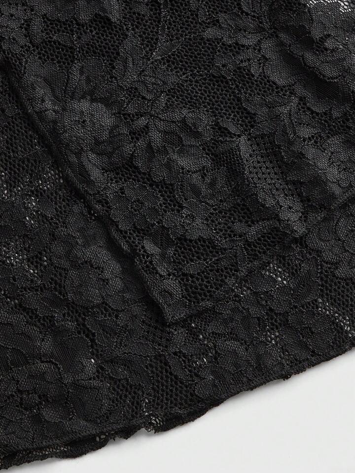Goth Falda mini negra de línea A con cola de pez, Body ceñido, hecha a mano con encaje de rejilla de tul y lazo, en estilo gótico victoriano para fiestas