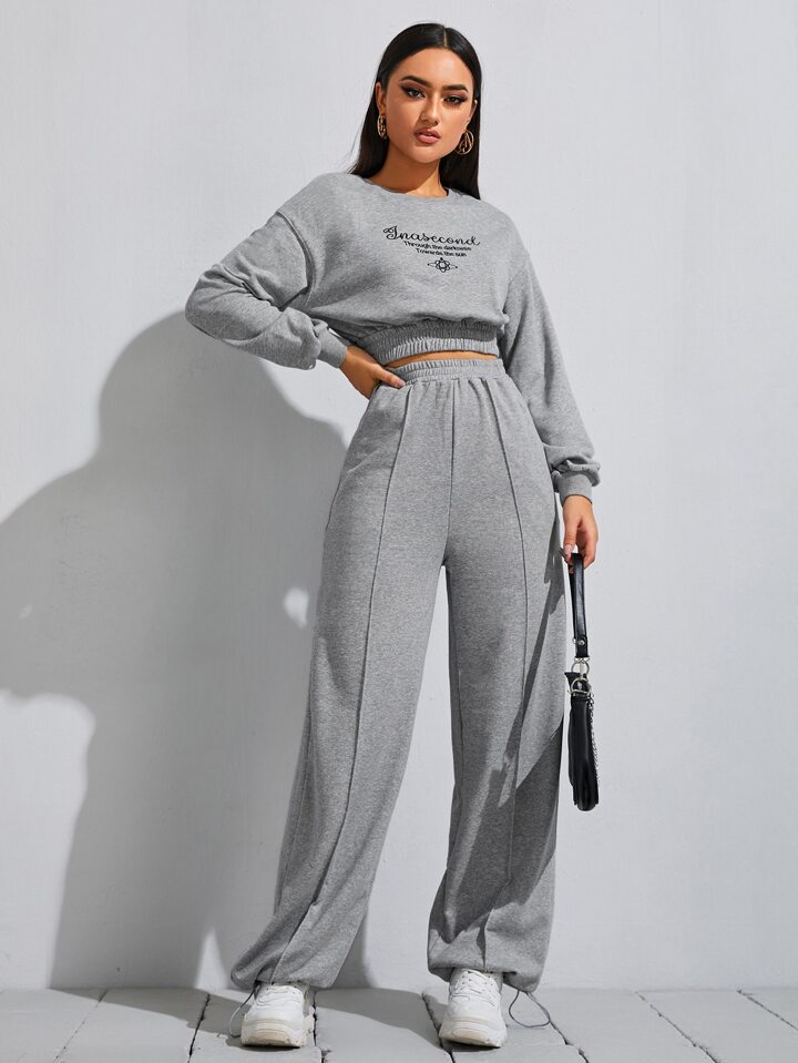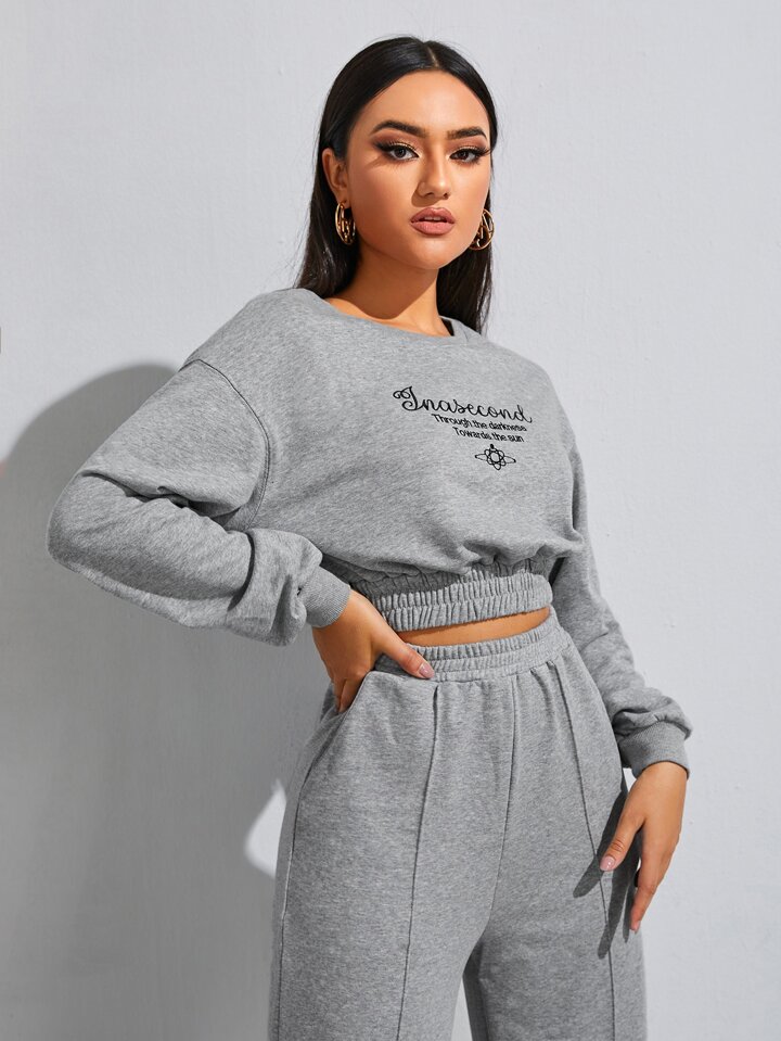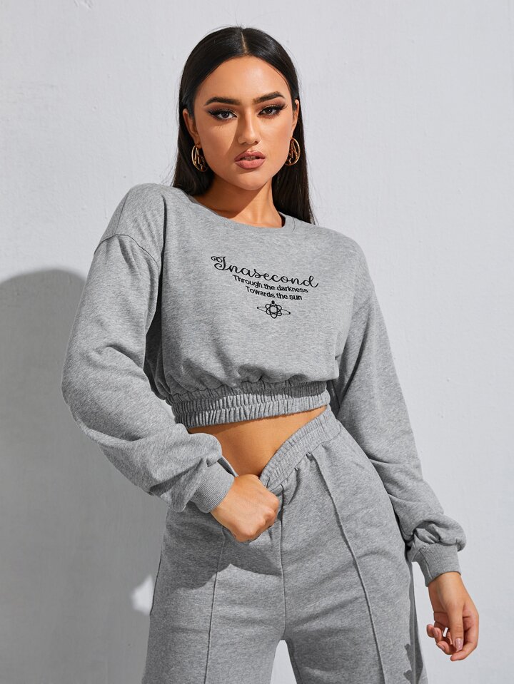 Sudadera corta con estampado & con bordado de slogan de hombros caídos