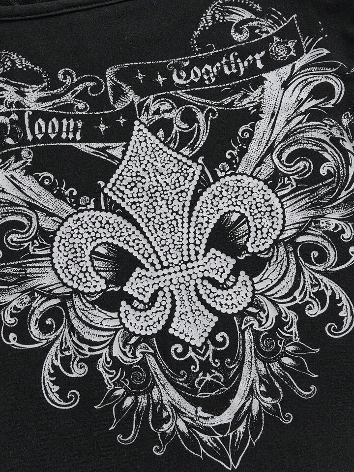 Vestido de mujer con estampado punk, aplicaciones de encaje, volantes y bajo asimétrico
