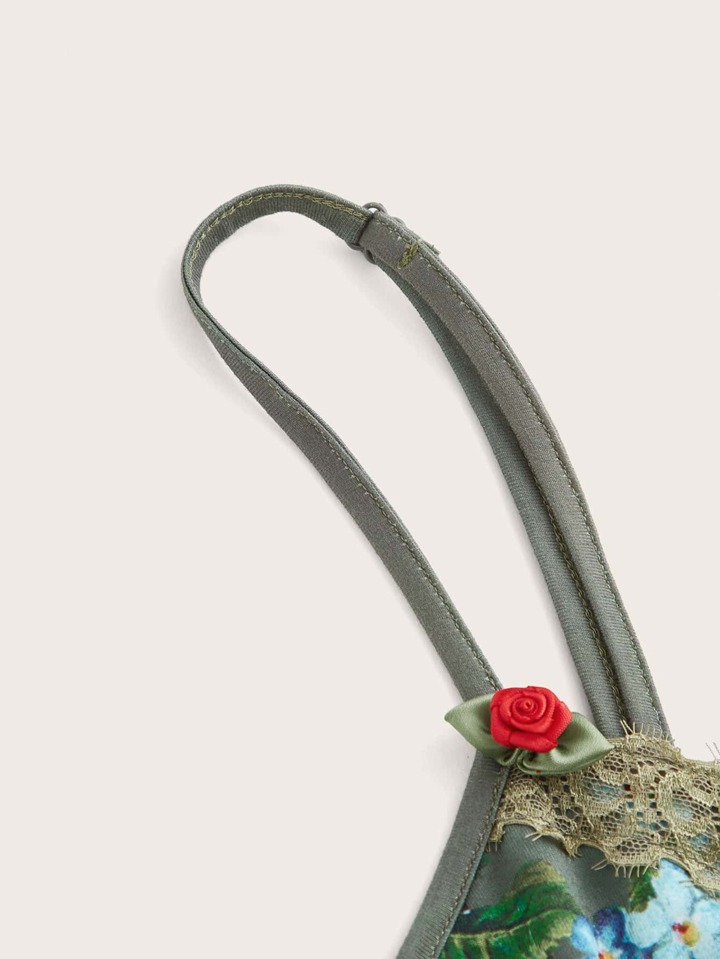 Vestido de tirantes grunge con estampado floral con encaje en contraste