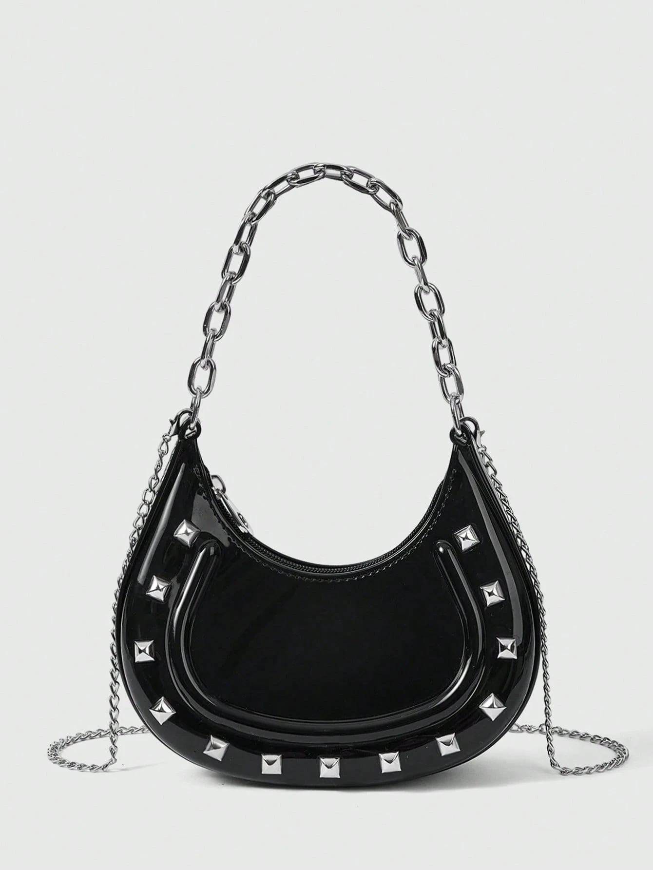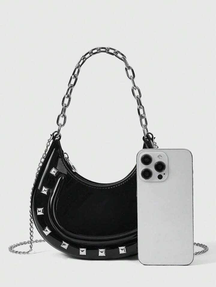 Grunge Punk 1 Paquete Bolso de mano de mujer estilo punk con remaches, cadena de hombro y bolso de gelatina cruzado