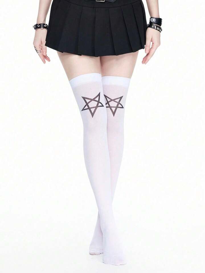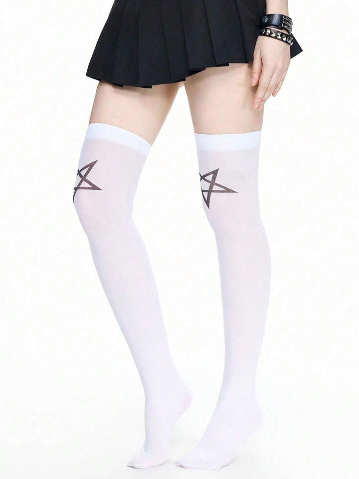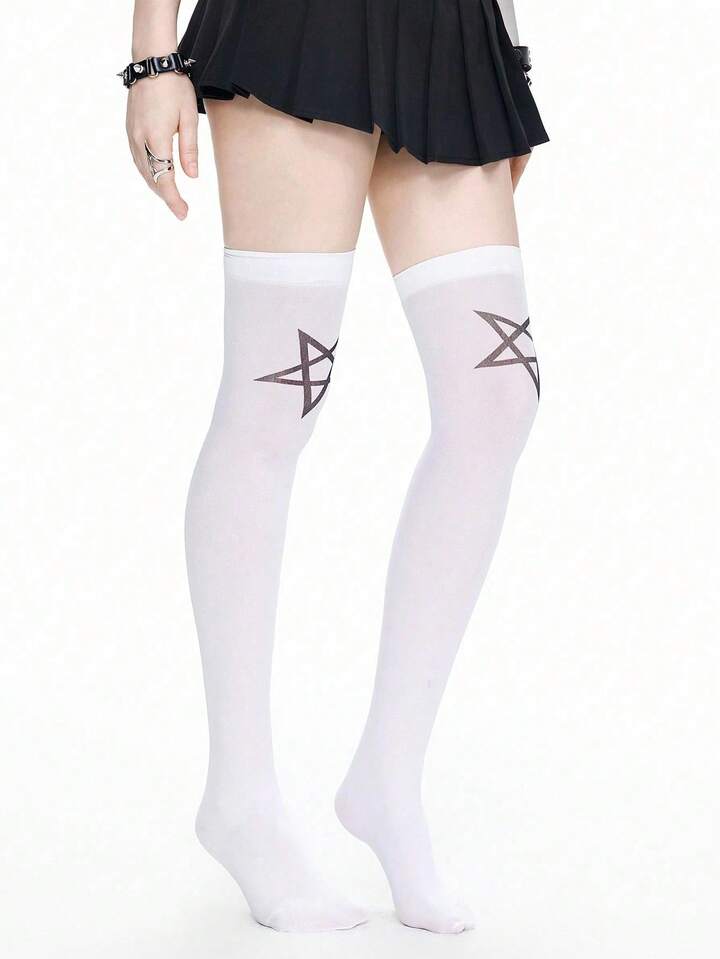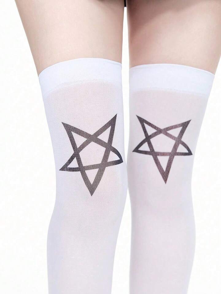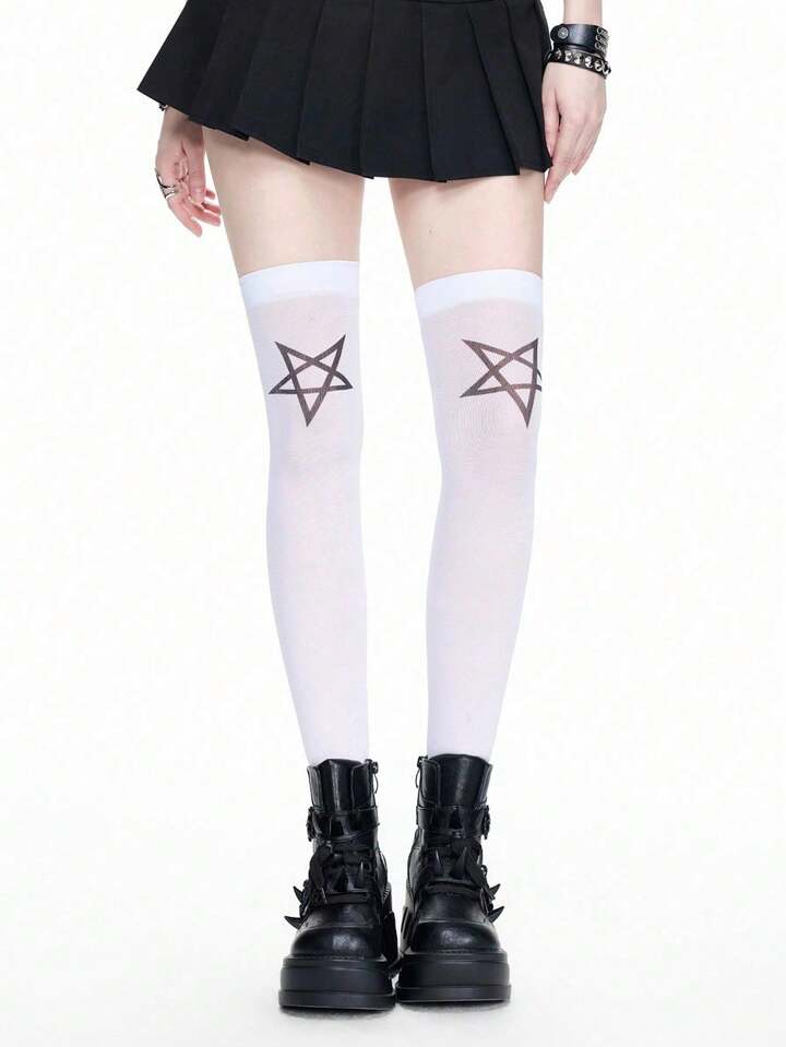 Grunge Punk 1 par de medias por encima de la rodilla de estrella de rock oscura